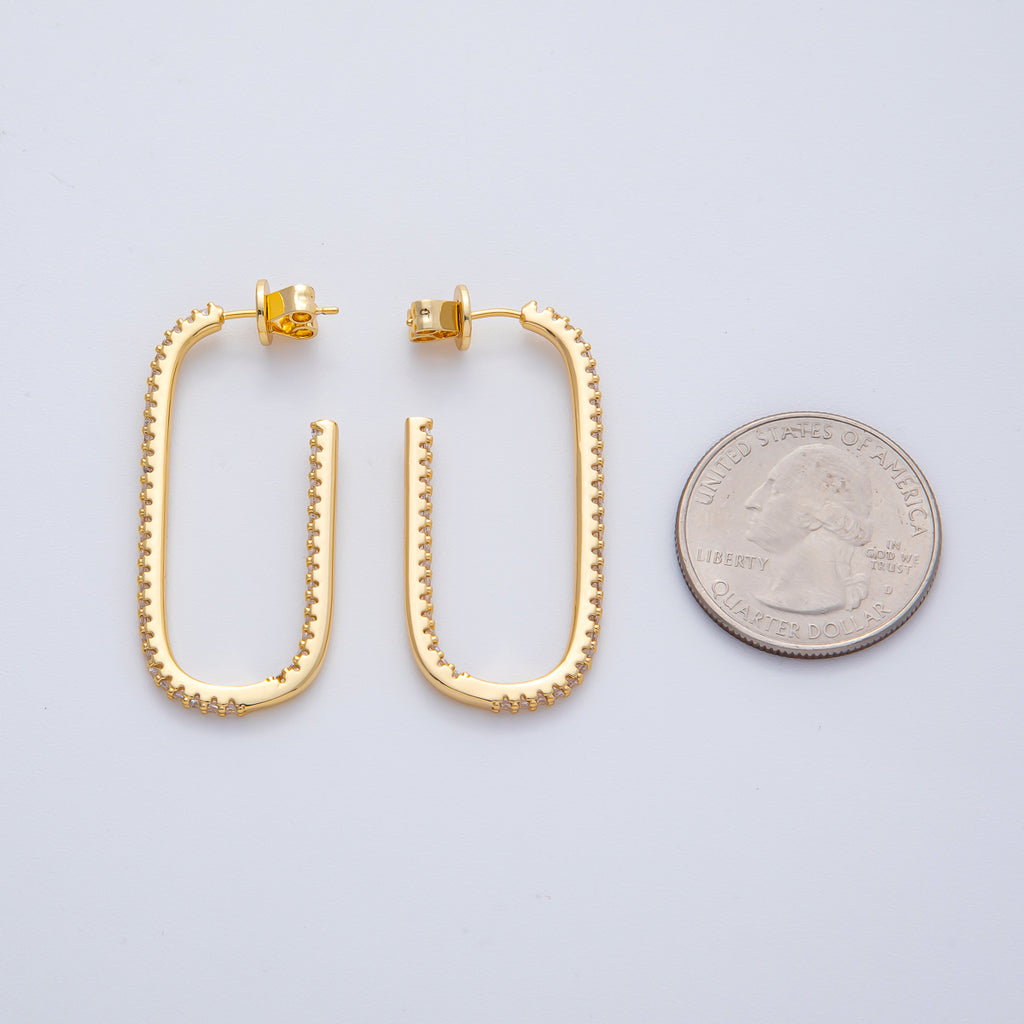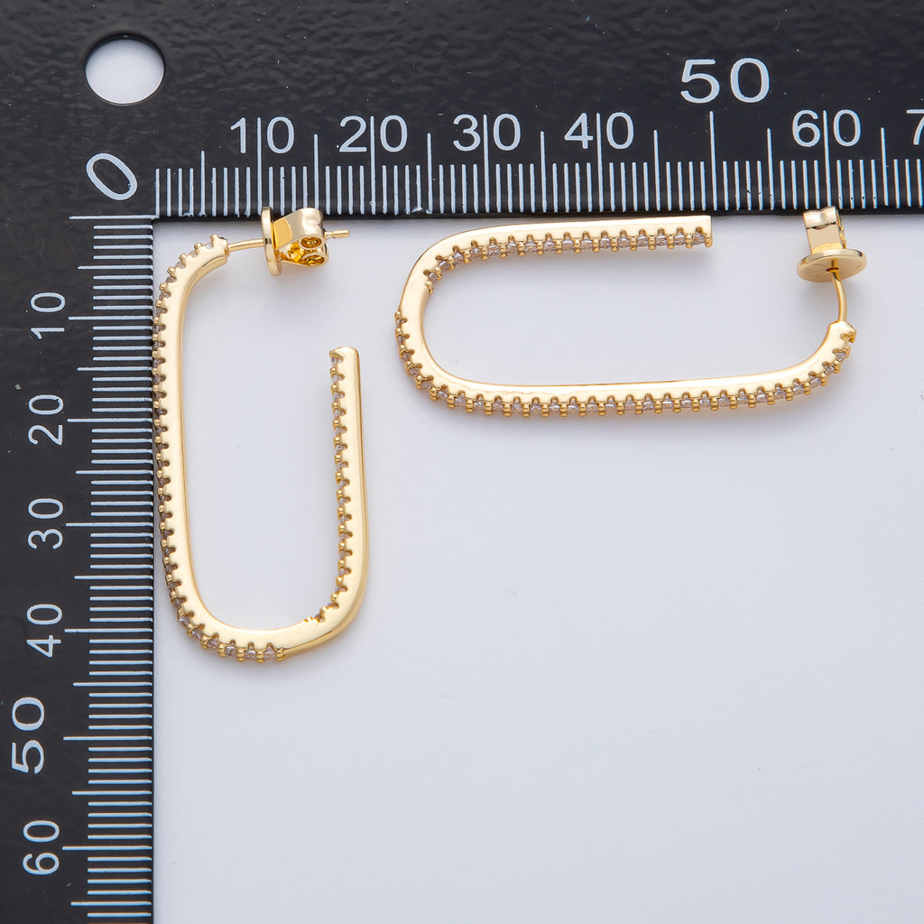 18K Gold Filled 40mm Micro Paved CZ J-Shaped Hoop Earrings | AD1635