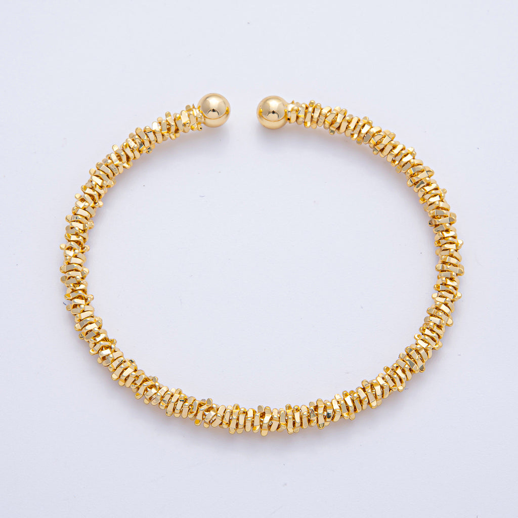 18K Gold Filled 5mm Nugget Rondelle Geometric Textured Cuff Bracelet | WA-3860