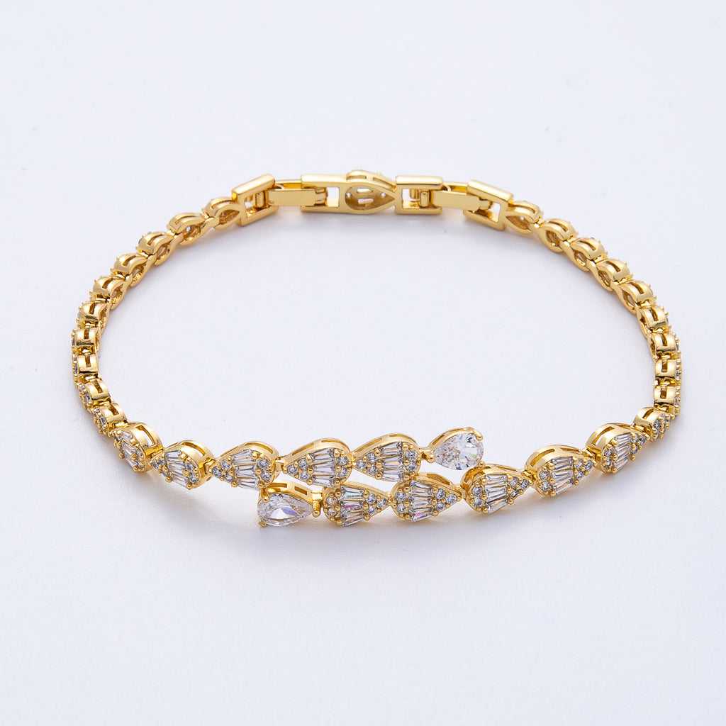18K Gold Filled 9.5mm Clear CZ Micro Paved Teardrop Tennis Chain Adjustable Bracelet | WA-3881
