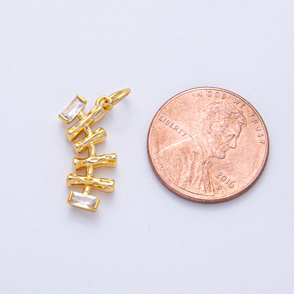 18K Gold Filled 19mm Baguette CZ Geometric Molten Curved Charm | AK017
