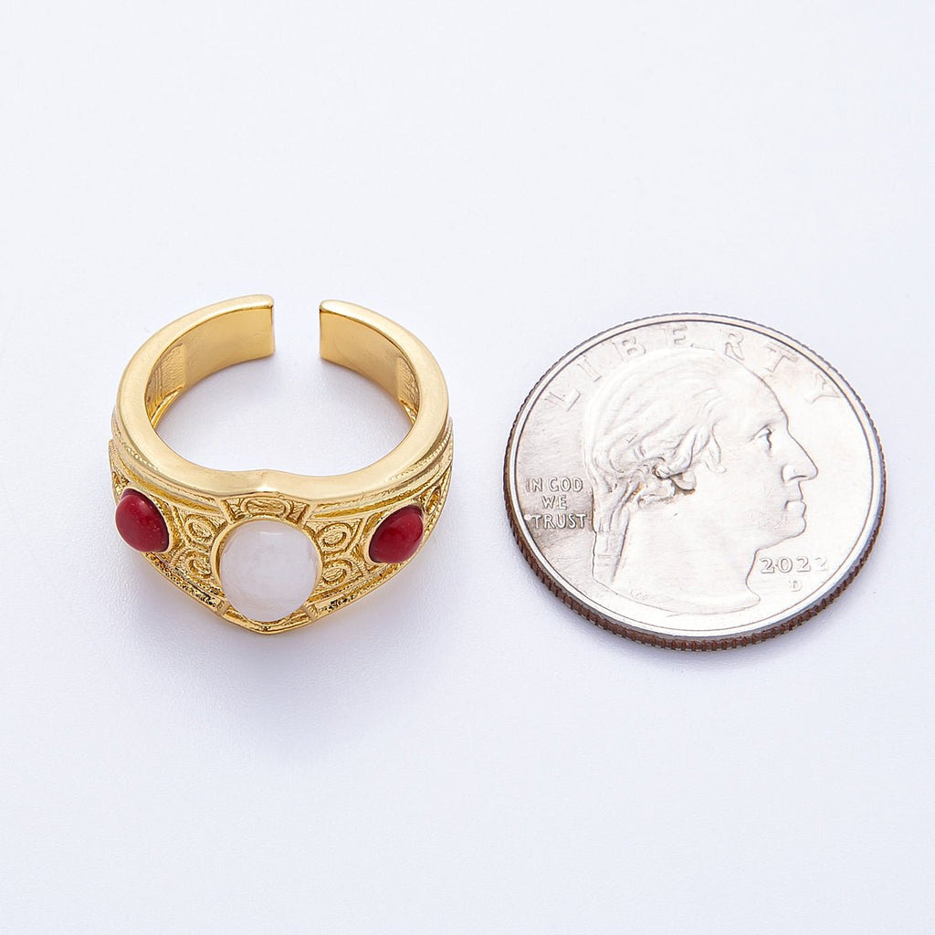 18K Gold Filled Carnelian White Quartz Cabochon Artisan Signet Ring | Ring-00035