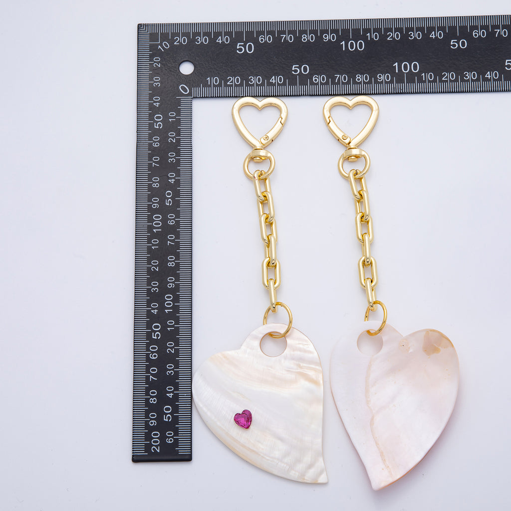18K Gold Filled 186mm CZ Shell Pearl Heart Push Gate Keychain Accessories | WB-00289