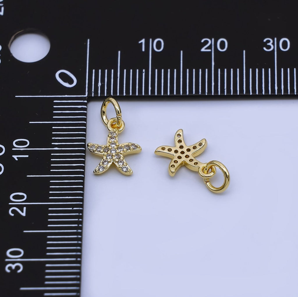 24K Gold Filled 10mm Micro Paved CZ Starfish Charm | AJ478