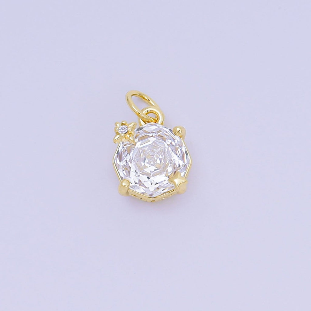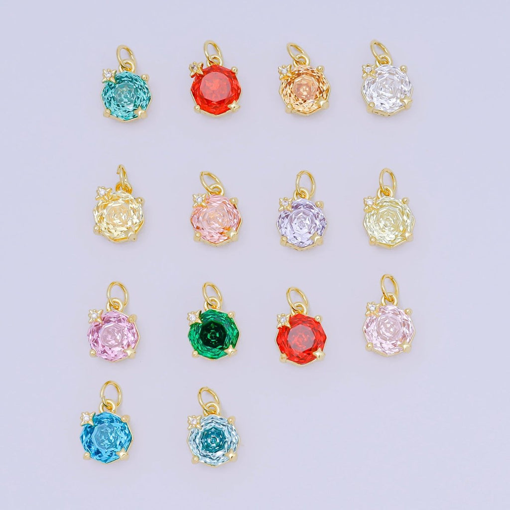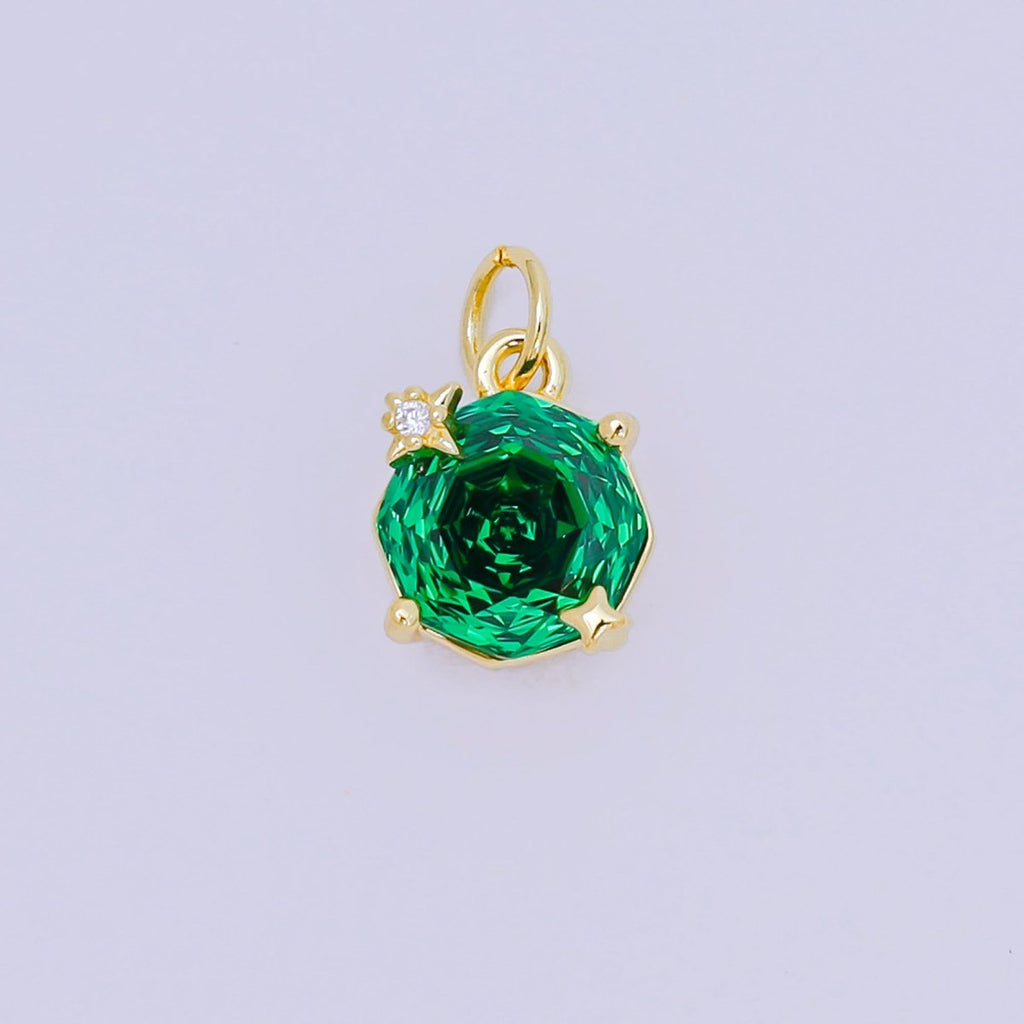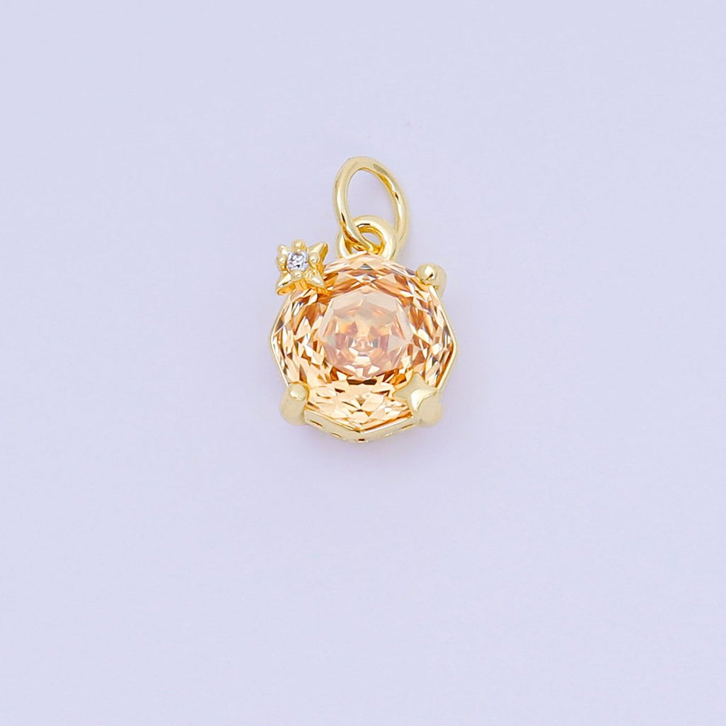 24K Gold Filled Celestial Sun Round CZ Birthstone Charm | M102 - M106 M197 M212