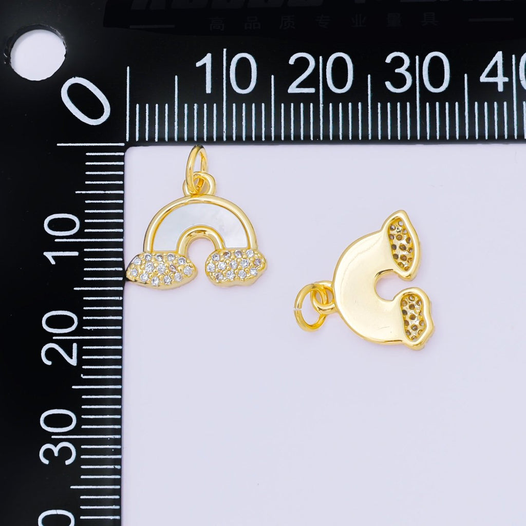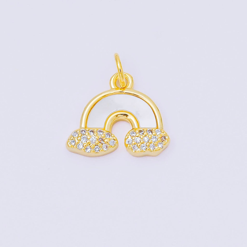 24K Gold Filled 12mm Shell Pearl Micro Paved CZ Rainbow Charm | M813