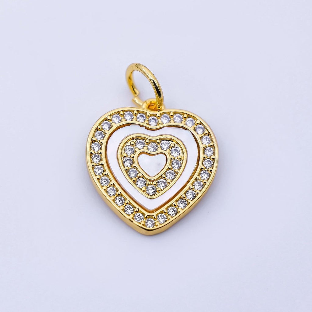 24K Gold Filled 16mm Shell Pearl Micro Paved CZ Heart Charm | C969