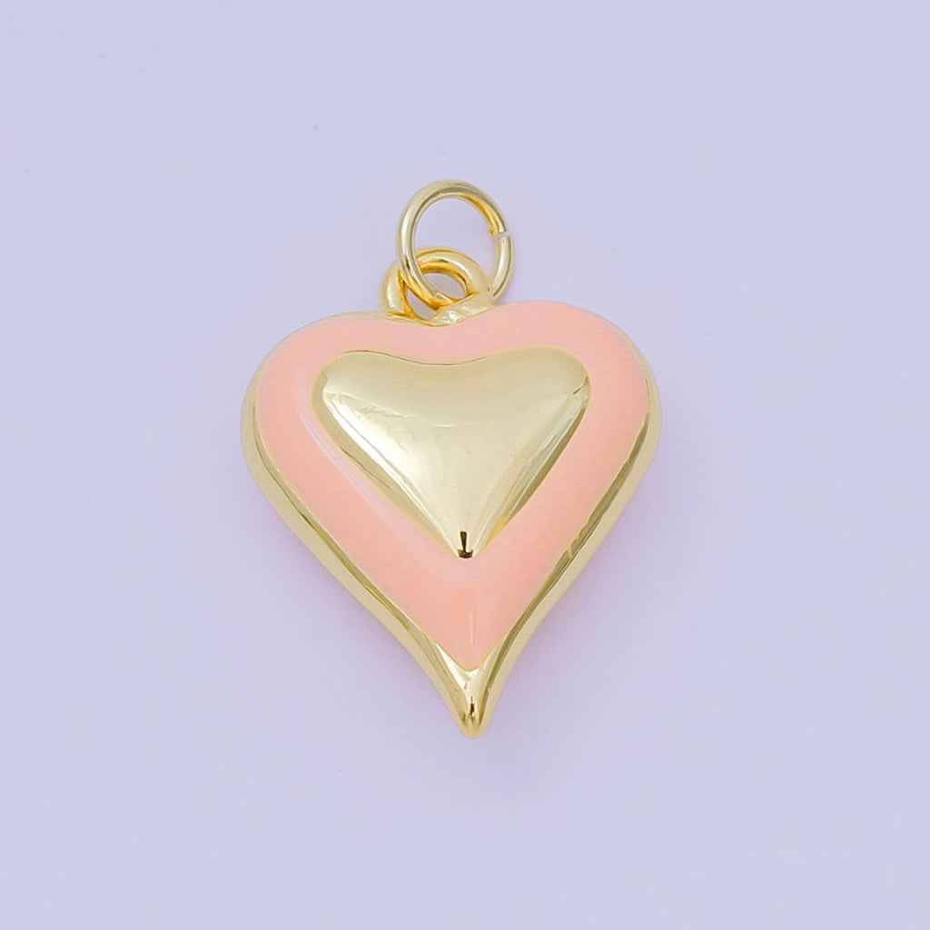 24K Gold Filled 20mm Enamel Art Love Shades of Heart Charm in Green, Red & Pink | AH-674 - AH-676