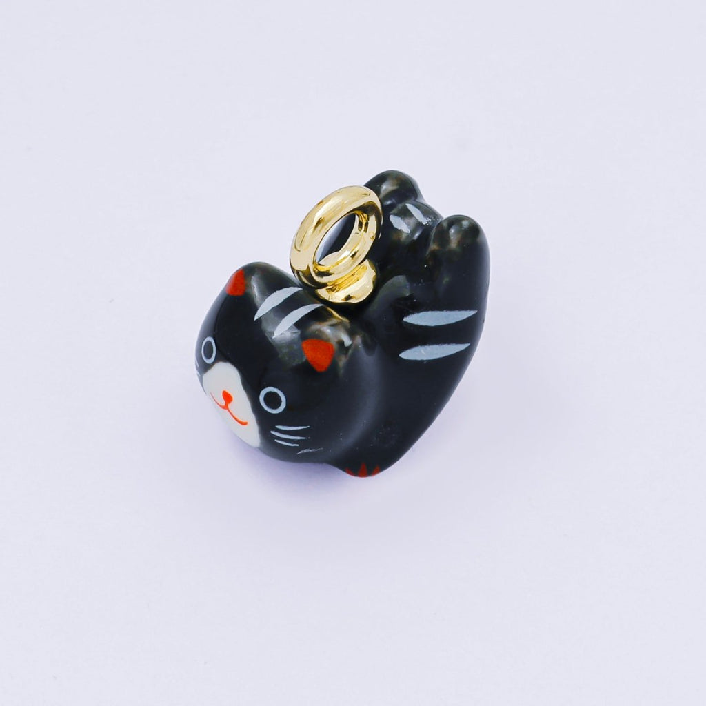 24K Gold Filled 21mm Ceramics Kawaii Cat Animals Porcelain Charm | AC1624 - AC1628