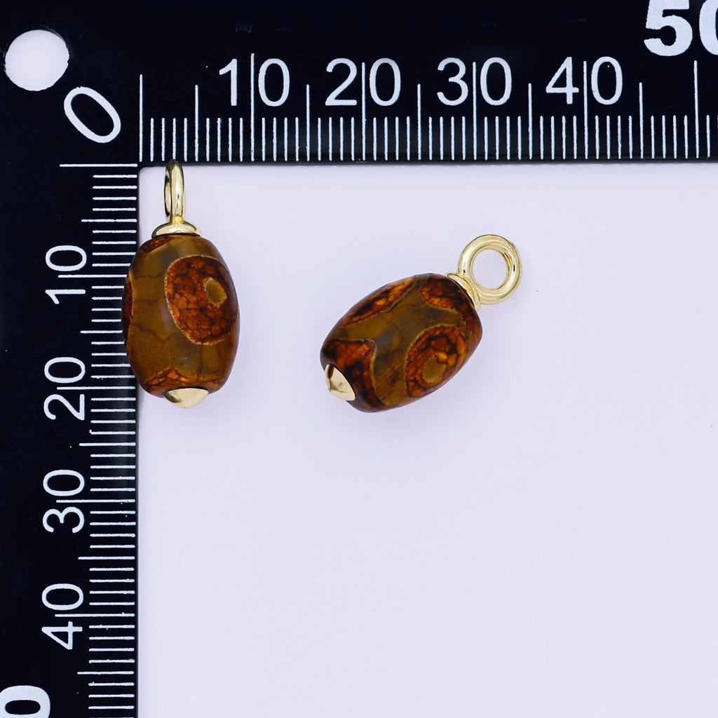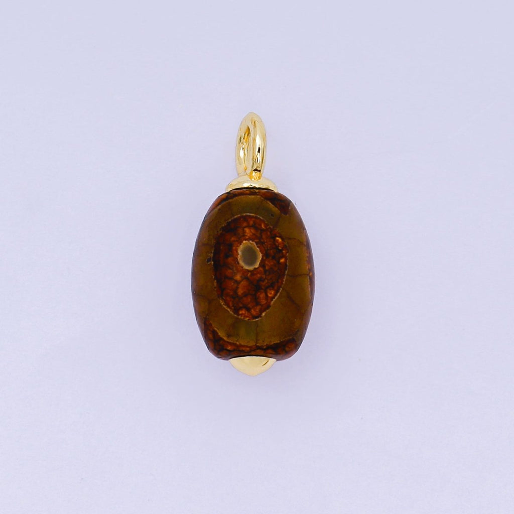 24K Gold Filled 22mm Brown Agate Gemstone Oval Drop Charm | AF1299