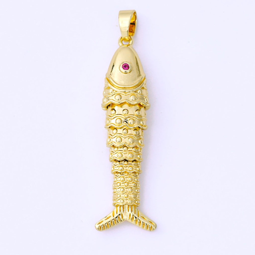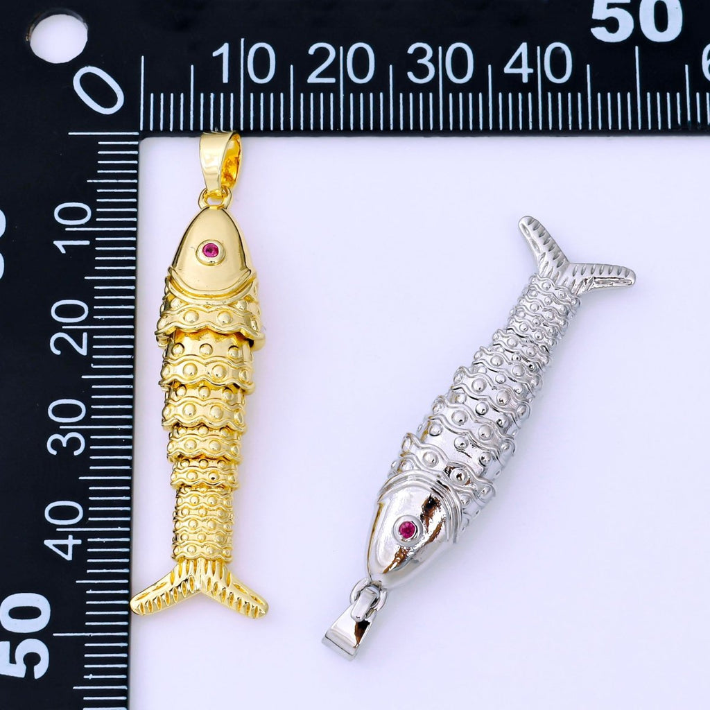 24K Gold Filled 43mm Fuchsia CZ Dotted Sardine Fish Multidimensional Charm in Gold & Silver | AA1620