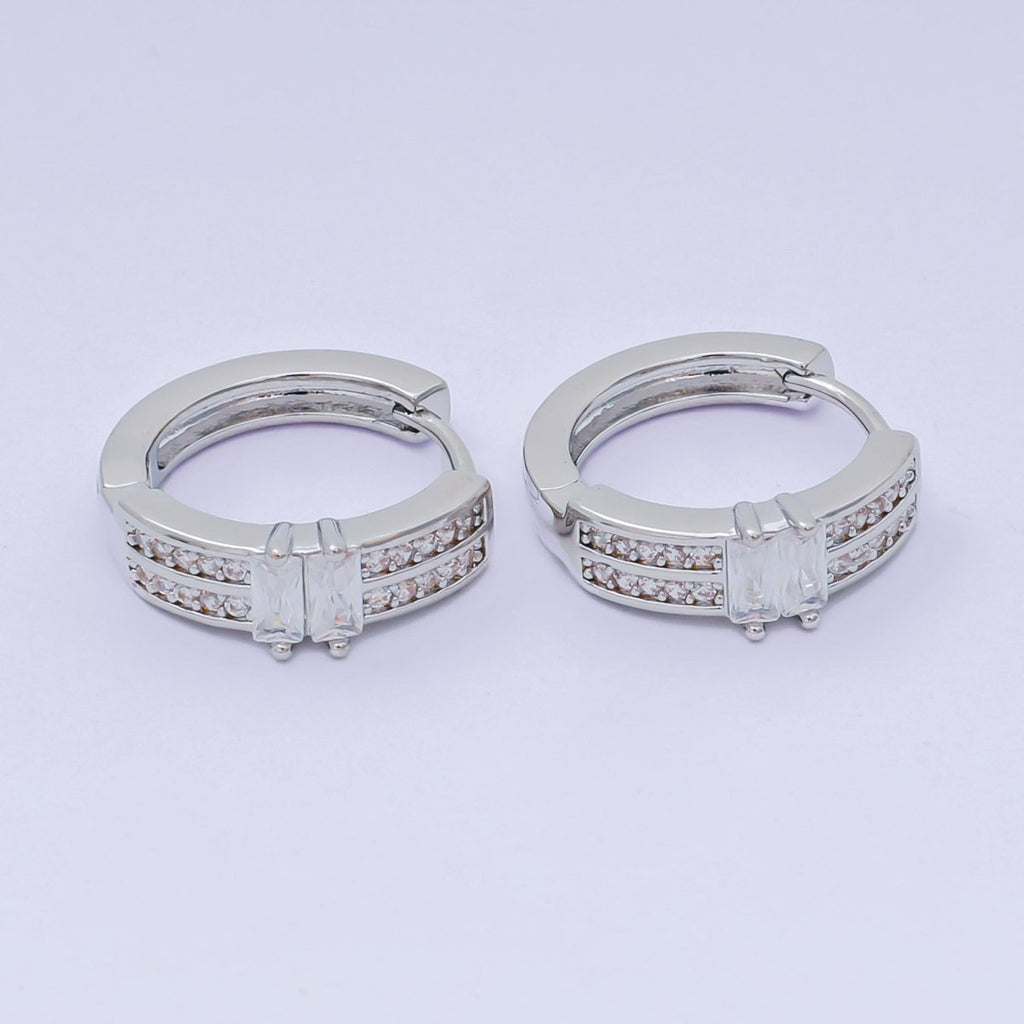24K Gold Filled 17mm Micro Paved CZ Double Row Radiance Hinged Huggie Hoops Earrings in Gold & Silver | AJ-123 AJ-124