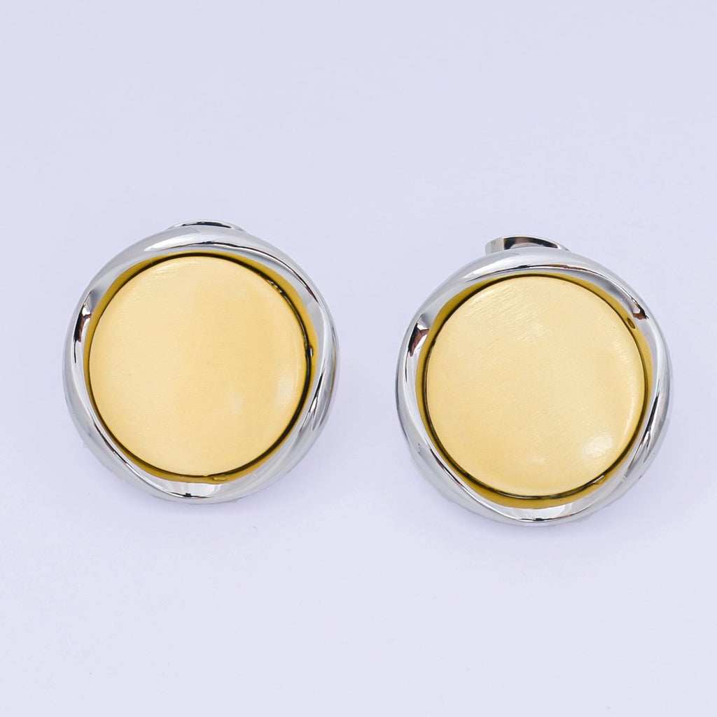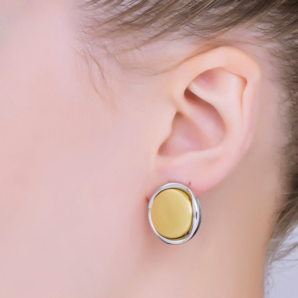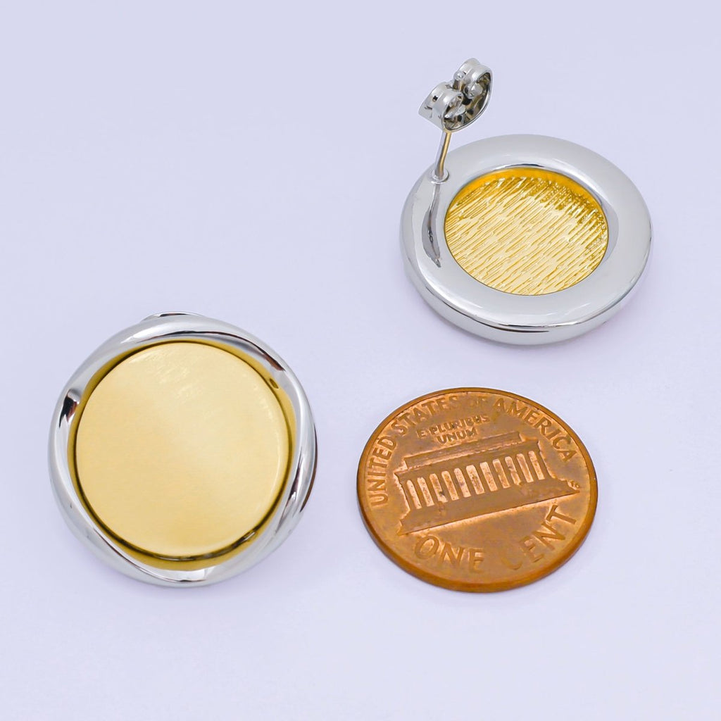 24K Gold Filled Mixed Metal Layered Circle Drop Stud Earrings | AB1596