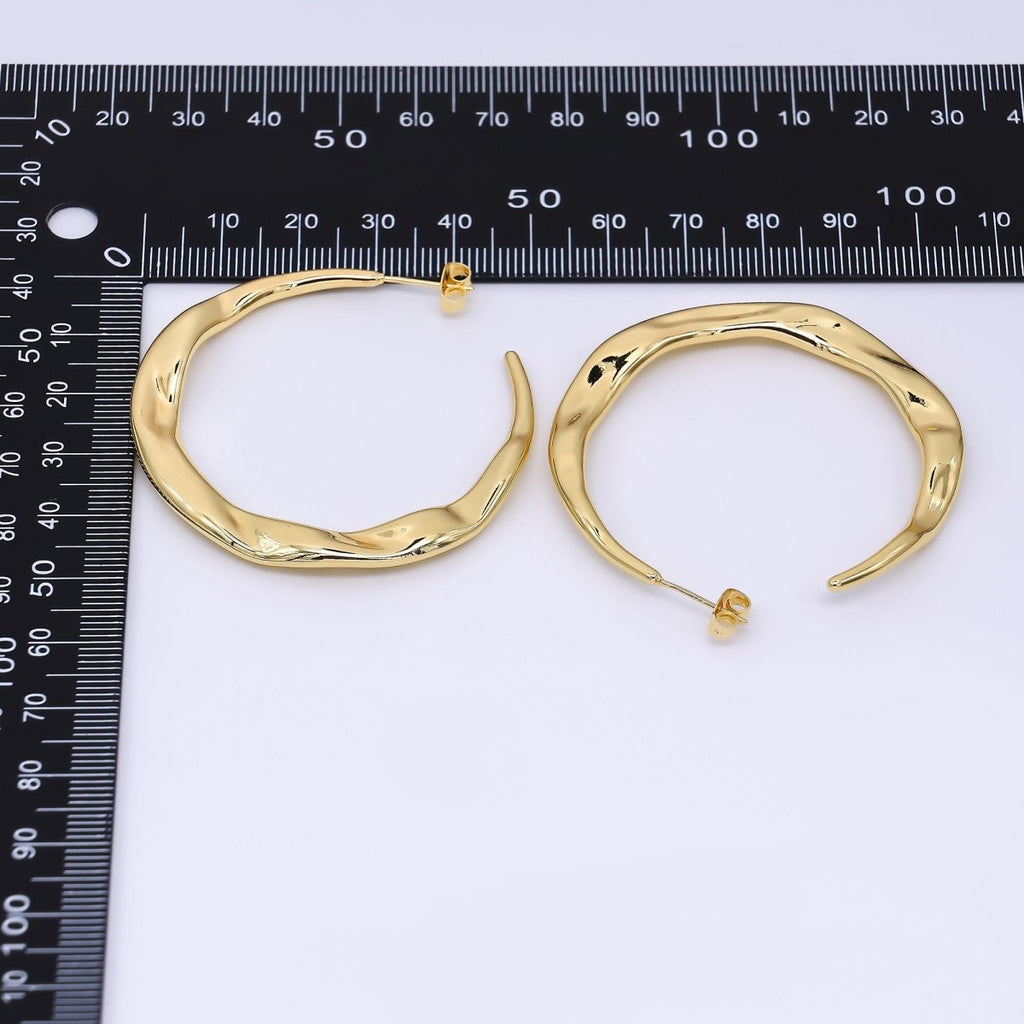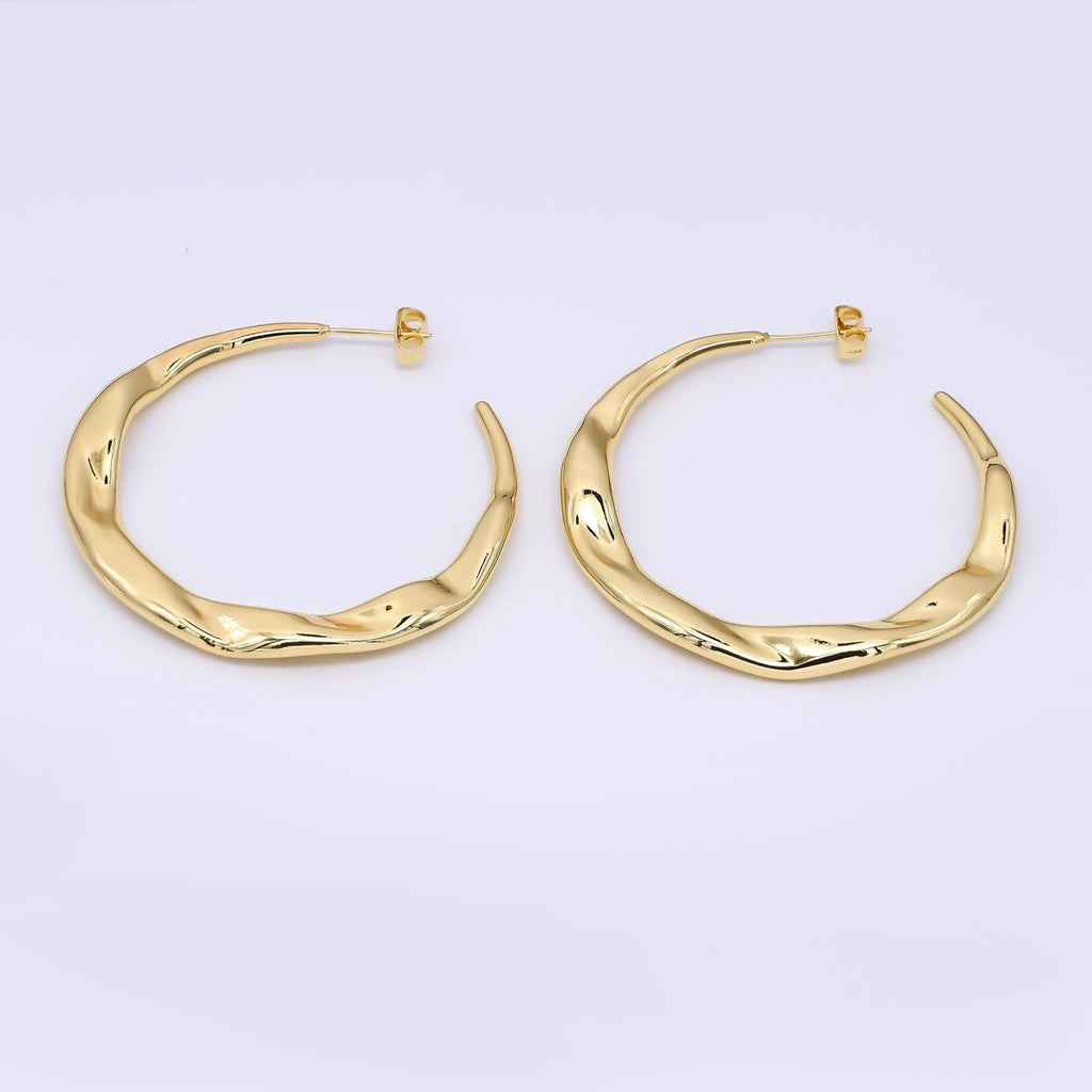 24K Gold Filled Molten Gold Modern Hoops Earrings 50mm | AJ-078