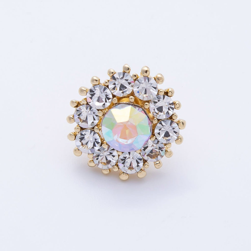 Gold 19mm Light Rhinestone Round Pin Brooch | BH-053