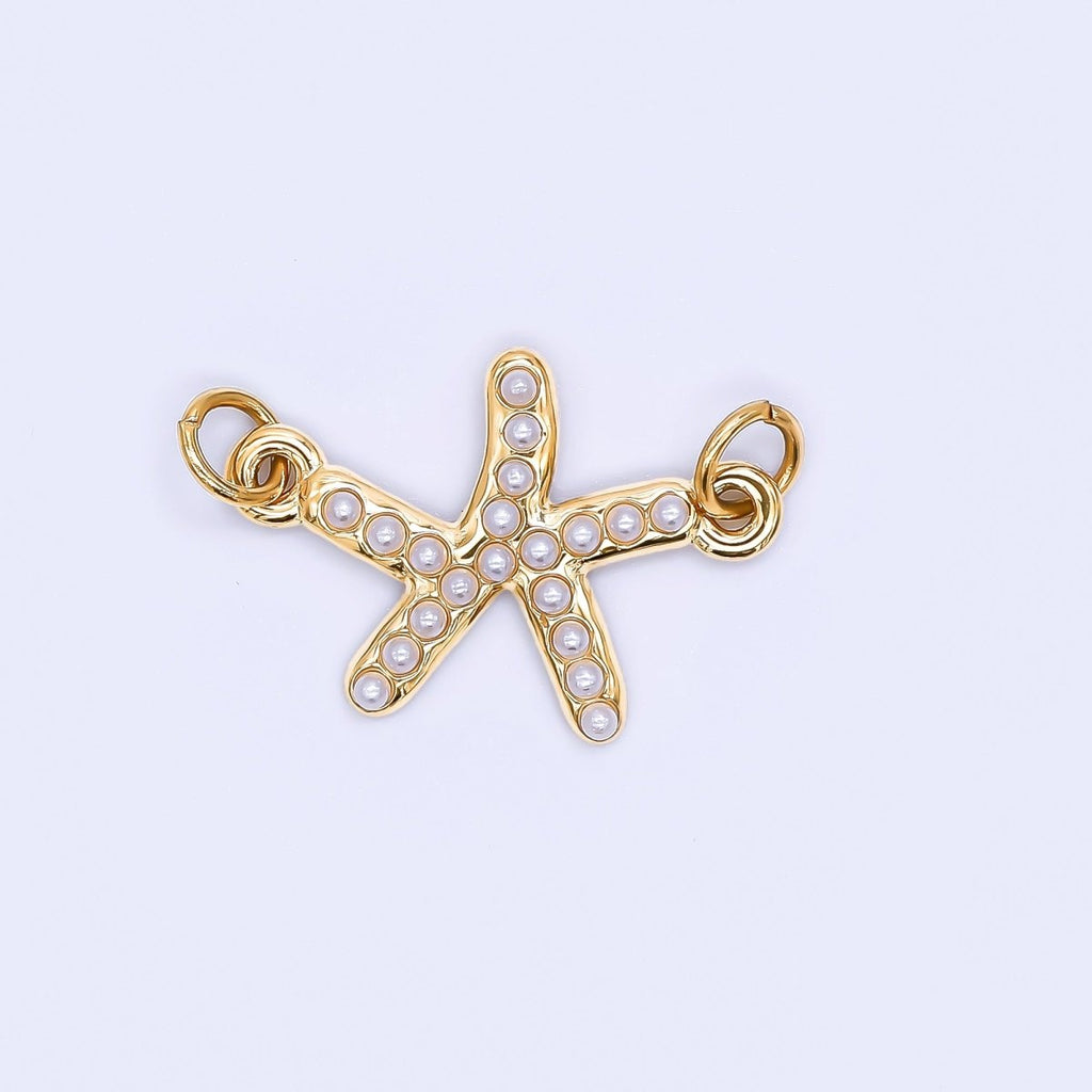 Stainless Steel 22mm Shell Pearl Tiny Starfish Charm Connector | Y058
