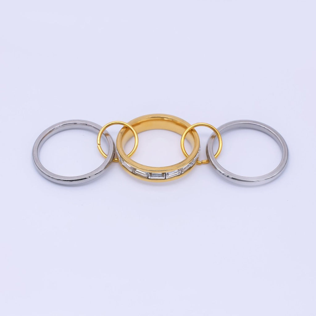 Stainless Steel Mixed Metal Baguette CZ Multiple Interlocked Bands Stacking Ring | O1439