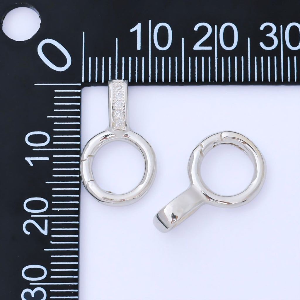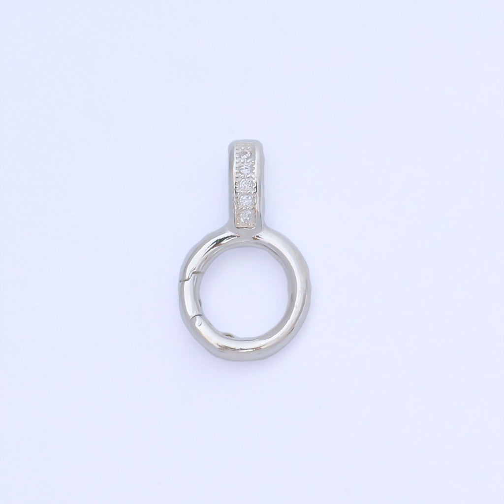 S925 Sterling Silver 19mm Micro Paved CZ Round Push Gate Clasp Open Loop Closure Finding | SL-699