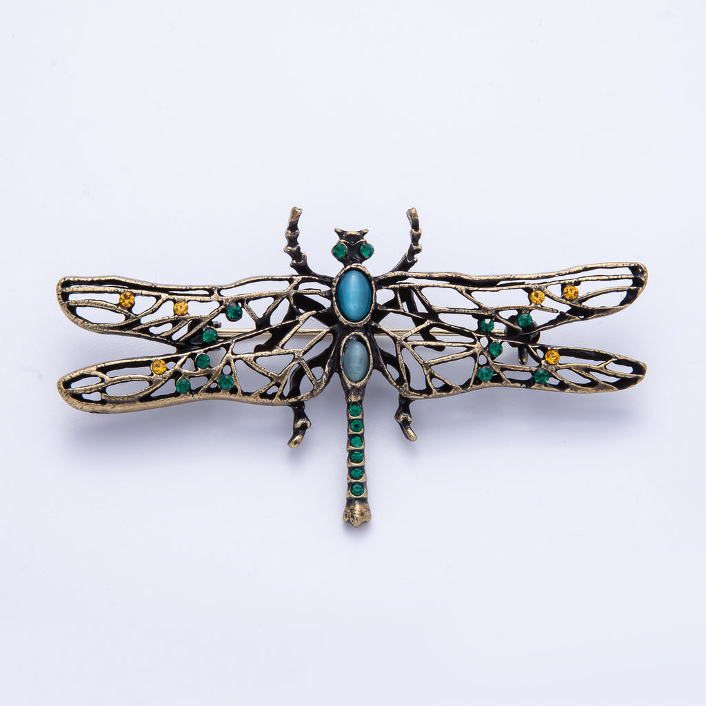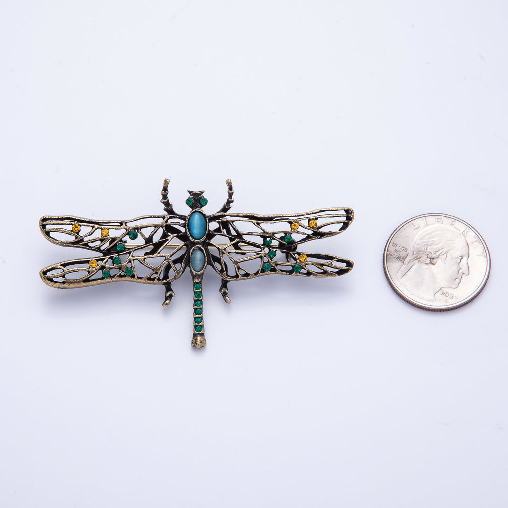 Vintage Gold 71mm x 40mm Dragonfly Insect Animal Pin Brooch | BH-028