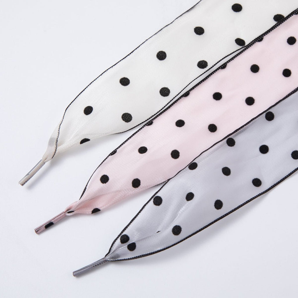 White, Pink, Black Retro Polka Dotted Sheer Chiffon Fabric Ribbon Shoelaces | WB00309 - WB00311