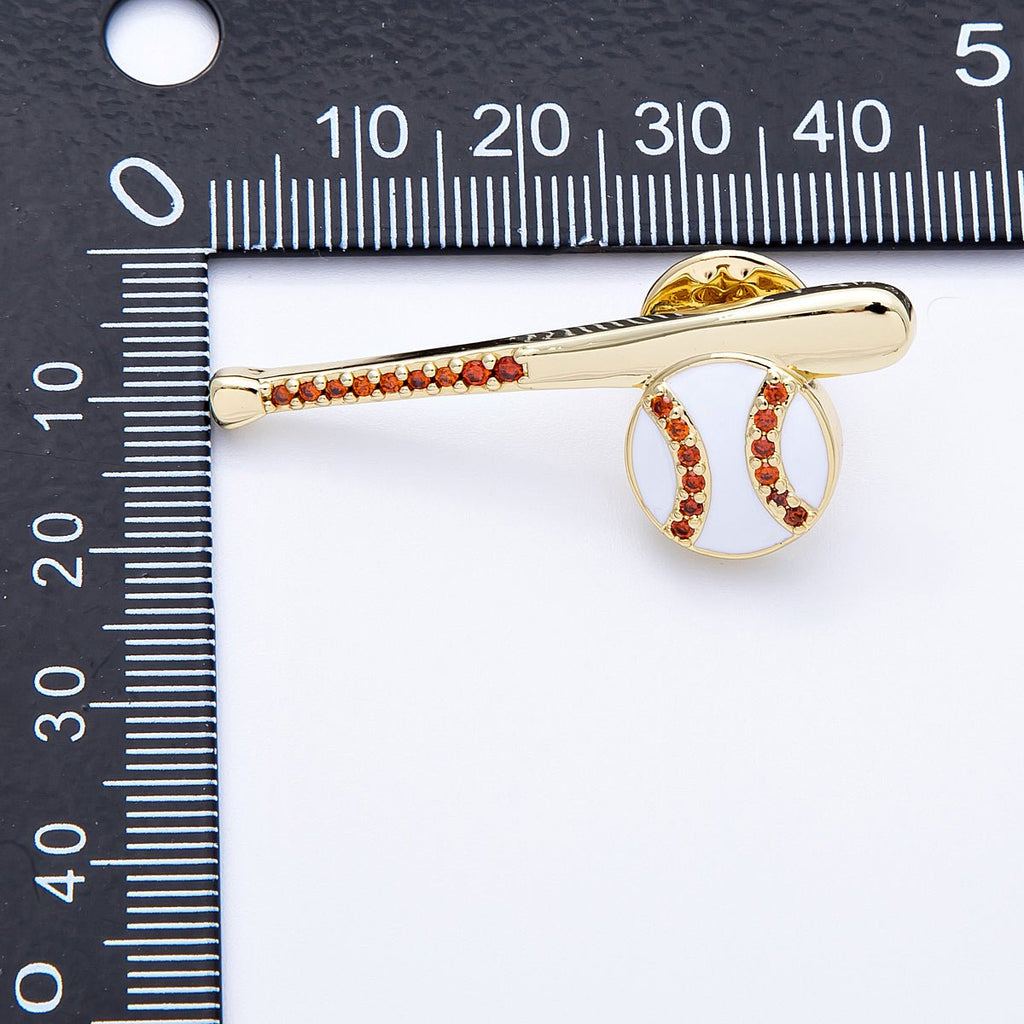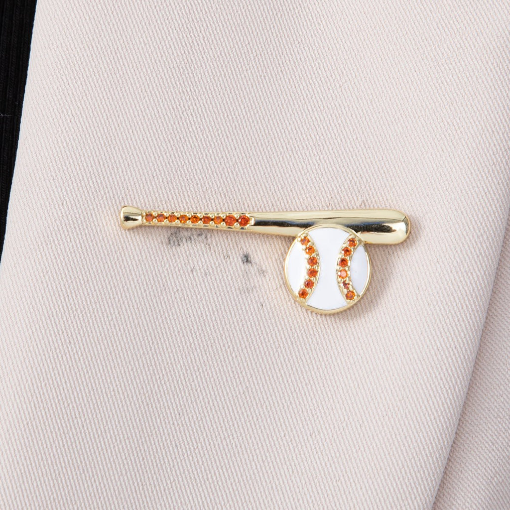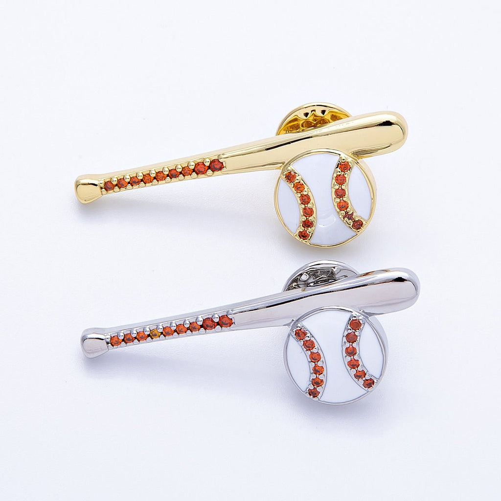 Gold, Silver 43mm White Enamel Paved Baseball Bat Sports Pin Brooch | BH114 BH-115