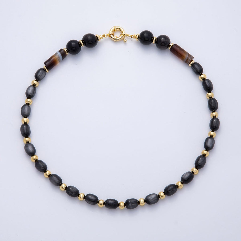 18K Gold Filled 12mm Black Onyx Nero Marquina Pebble Round Bead 18.5 Inch Necklace w. Sailor Clasps | WA-04135