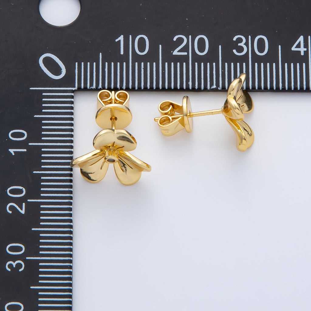 18K Gold Filled 13mm 3-Leaf Lucky Clover Floral Stud Earrings | AD1596
