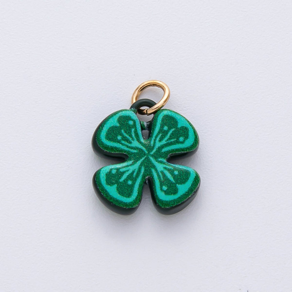 18K Gold Filled 15mm Green Clover Flower Enamel Charm | AF1614