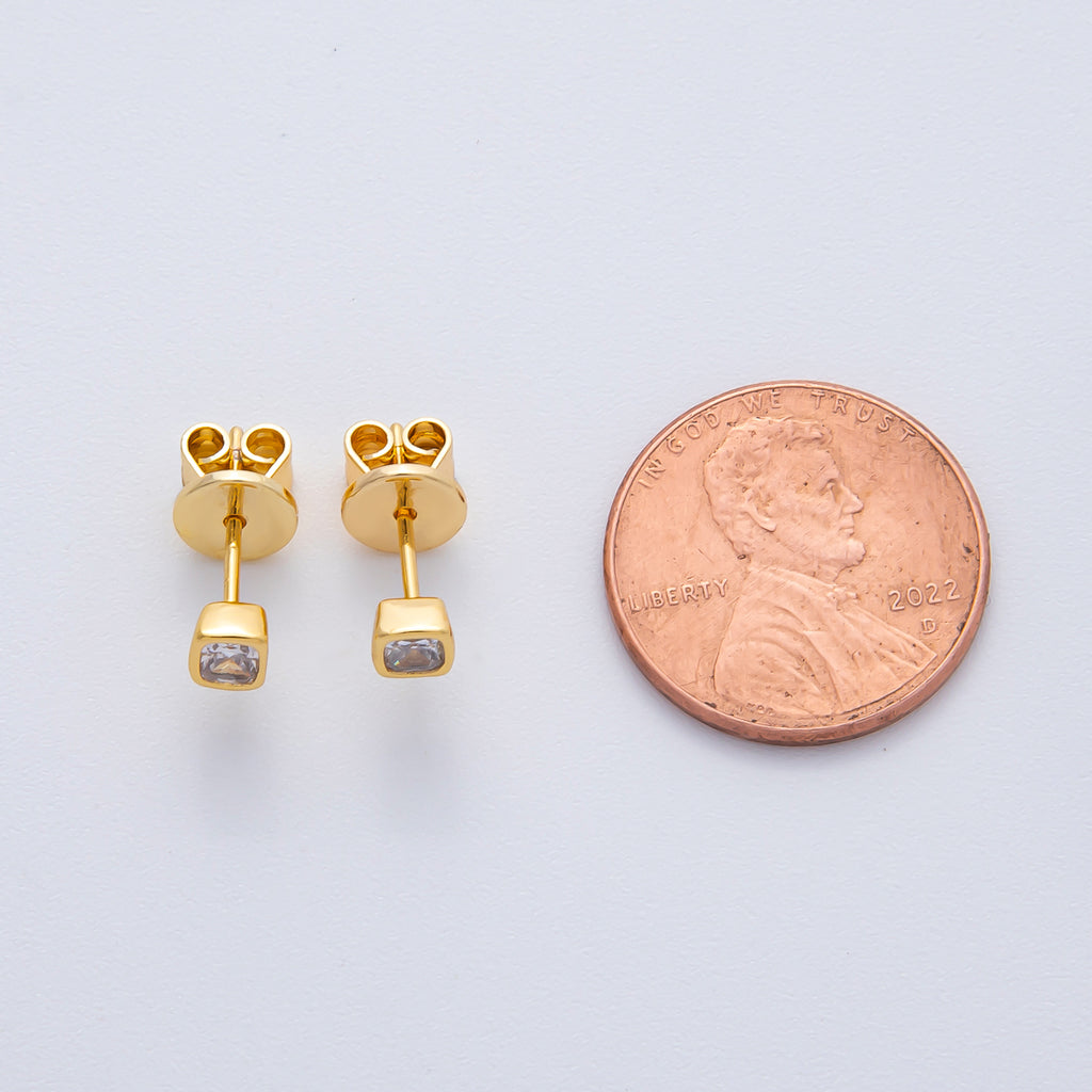 18K Gold Filled 3mm Clear CZ Square Bezel Stud Earrings | AD1616
