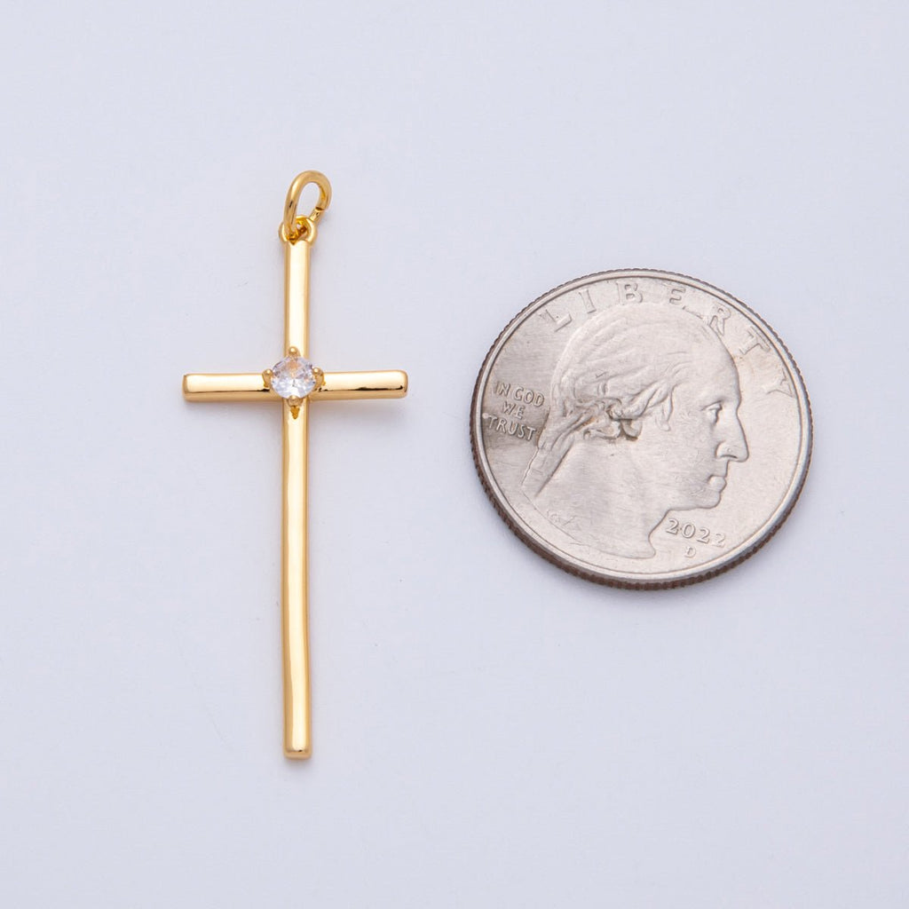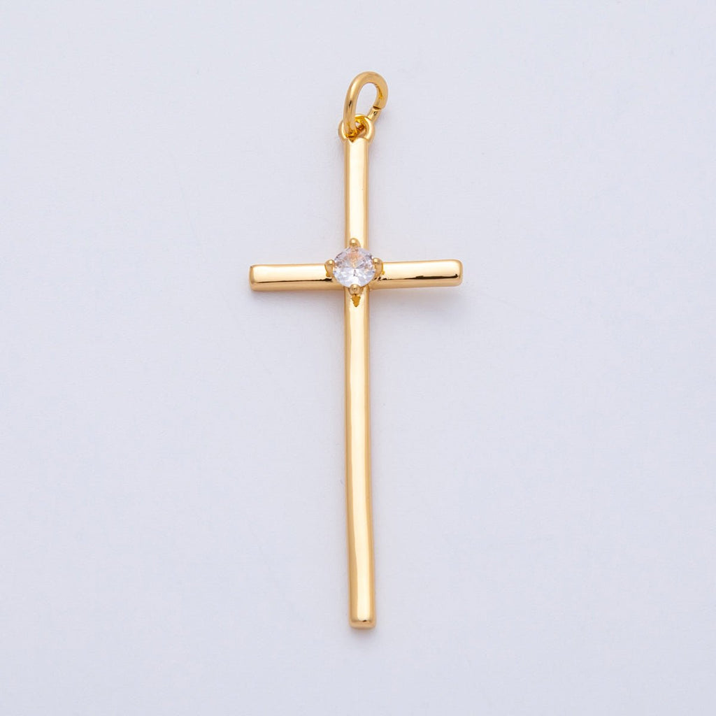 18K Gold Filled 41mm Clear CZ Religious Cross Minimalist Charm | Charms-00253