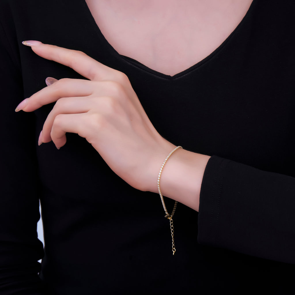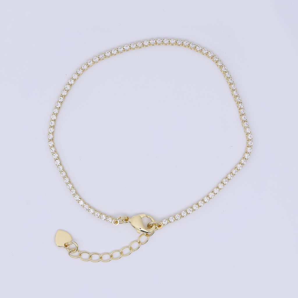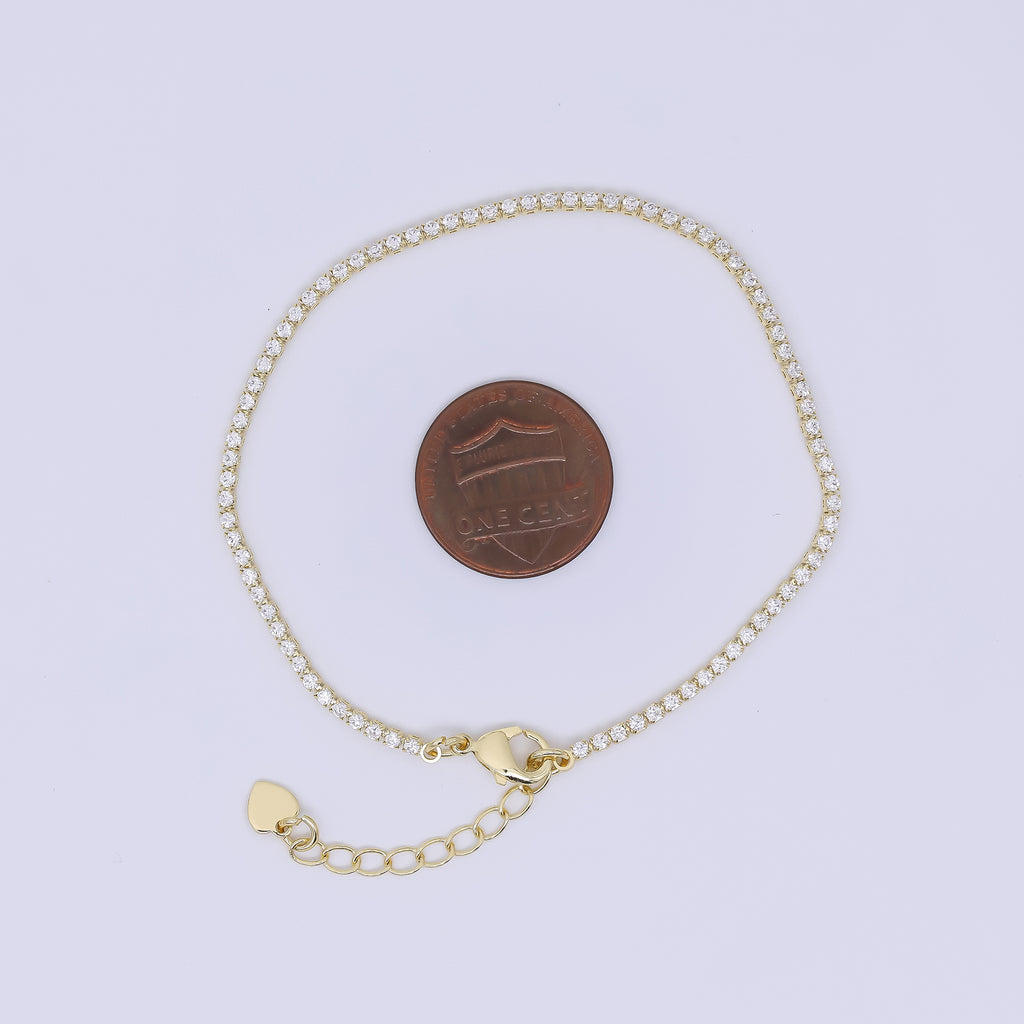24K Gold Filled 1.7mm Clear CZ Tennis Bracelet Chain 7 Inch w. Extender | WA-1633