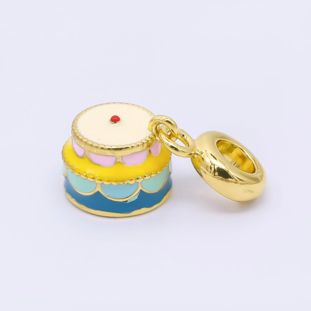24K Gold Filled Two-Tier Birthday Wedding Cake Drop Rondelle Charm | AC1640