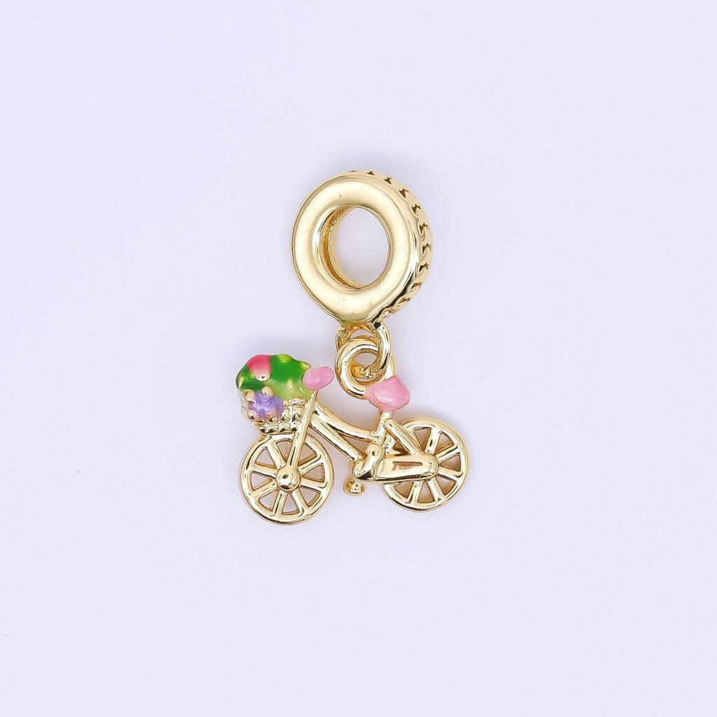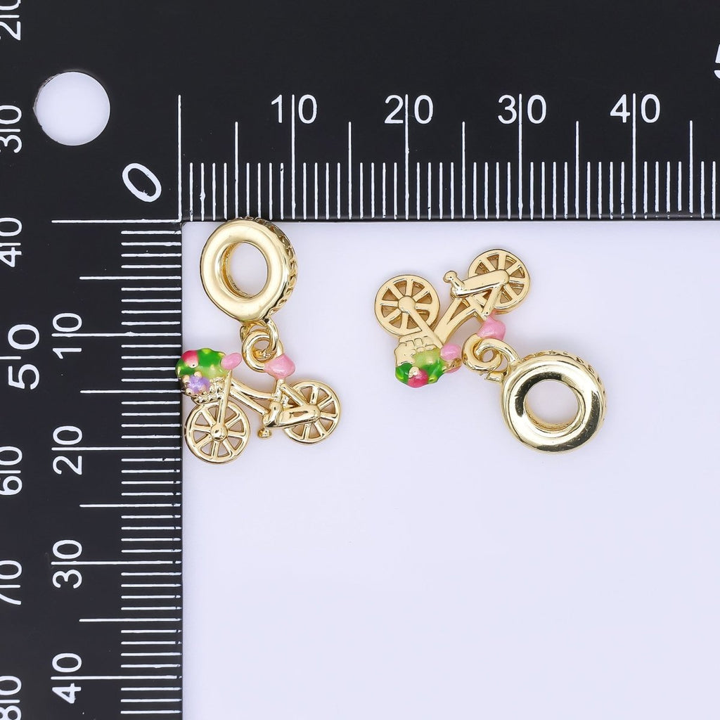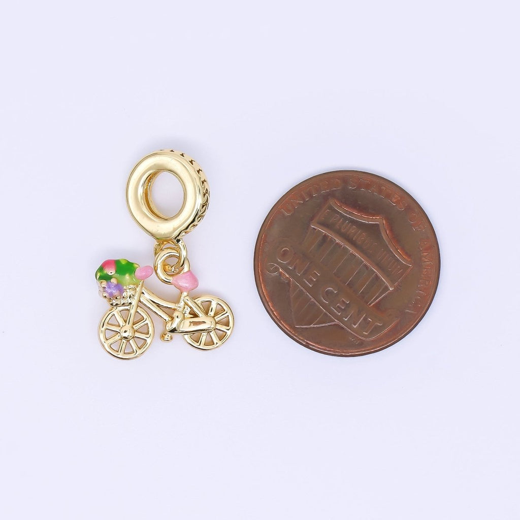 24K Gold Filled 11mm Flower Basket Bicycle Bike Drop Rondelle Charm | AC1632