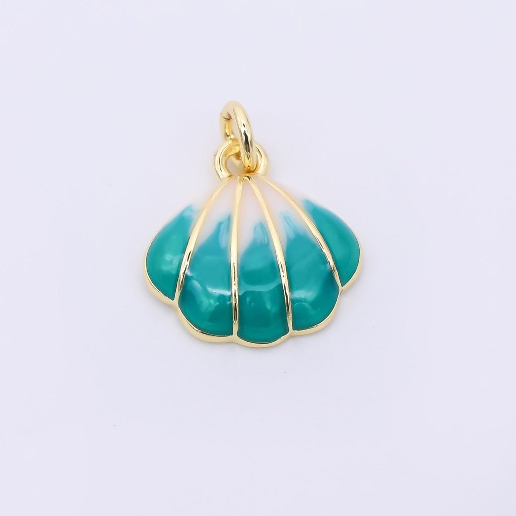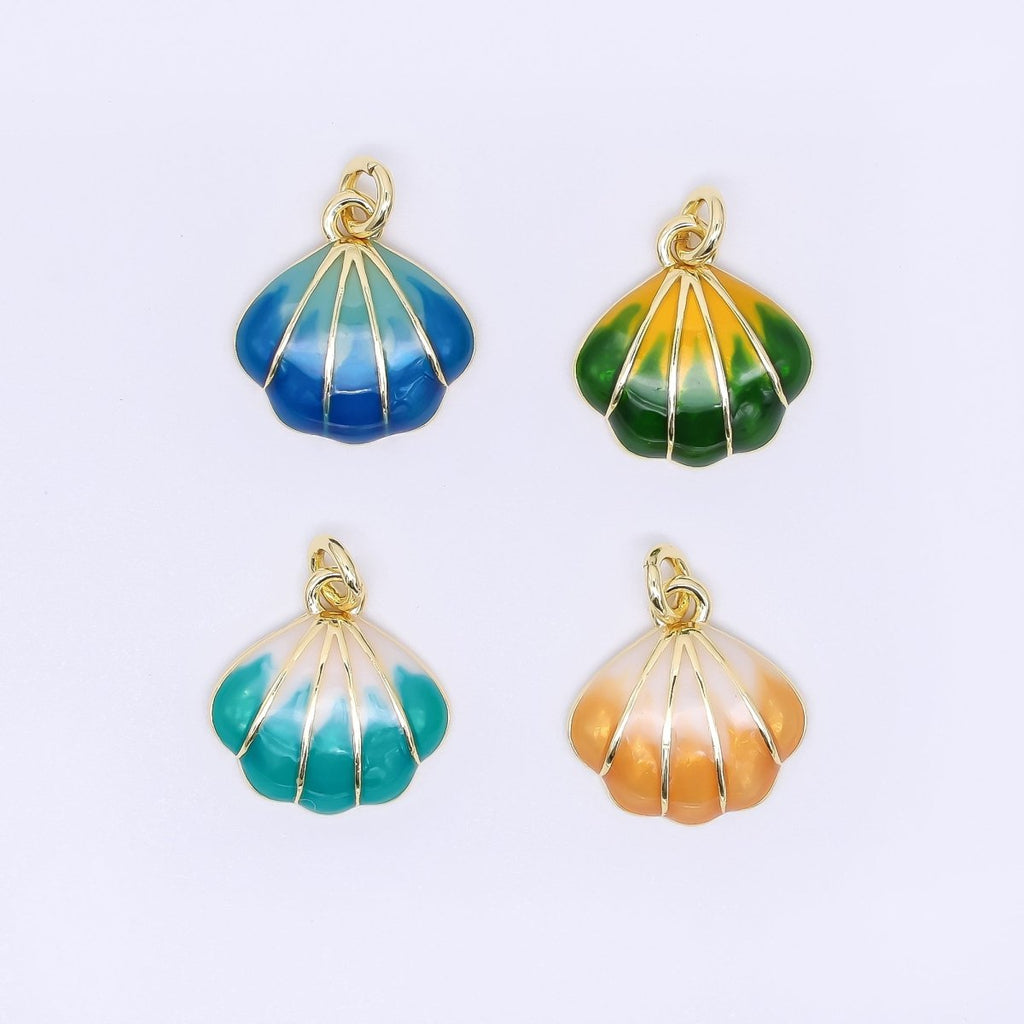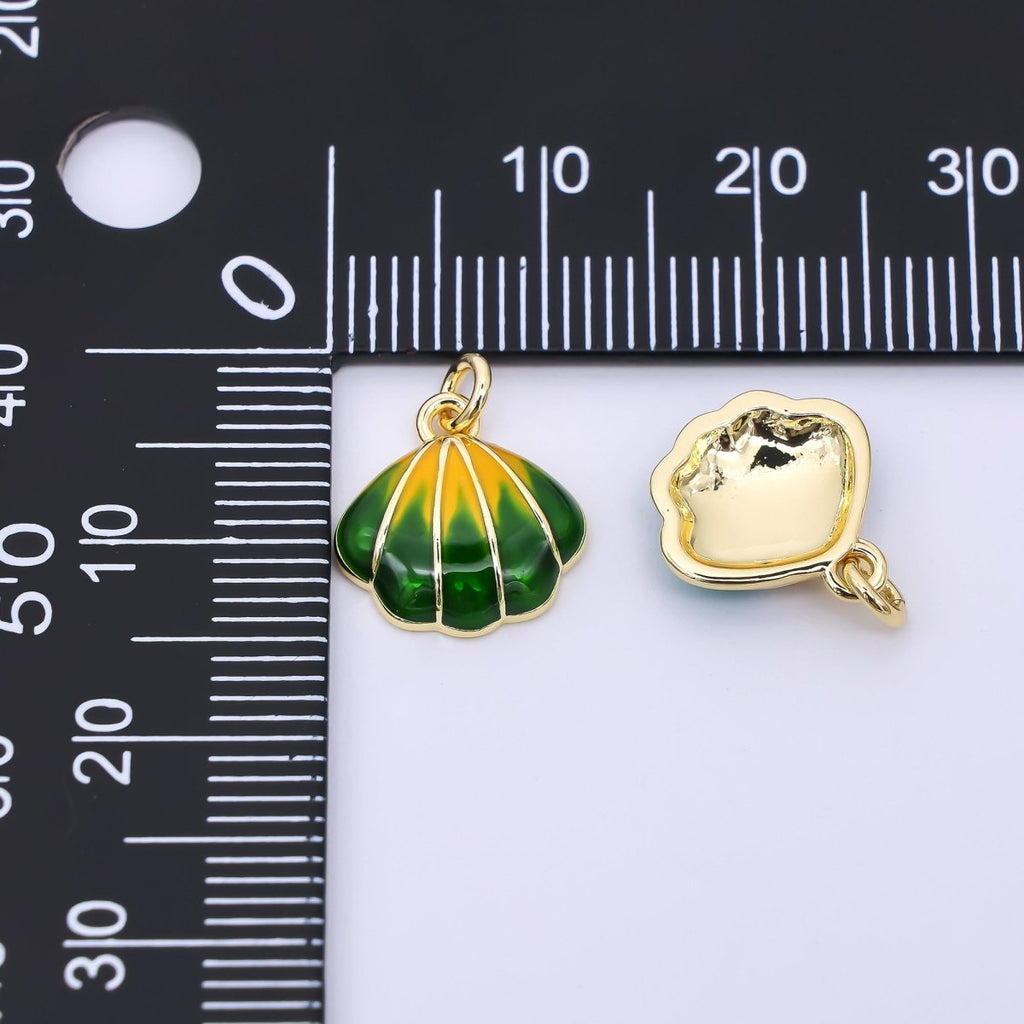 24K Gold Filled Green, Blue, Orange Gradient Enamel Scallop Clam Sea Shell Charm | AF545 AF546