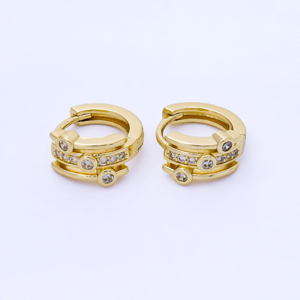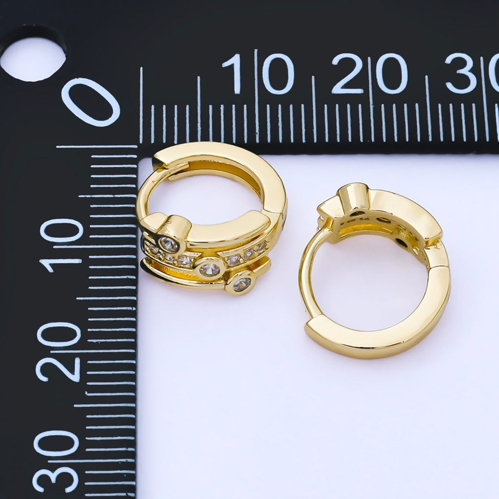 24K Gold Filled 13mm Micro Paved CZ Futuristic Cluster Huggie Earrings | AB1621