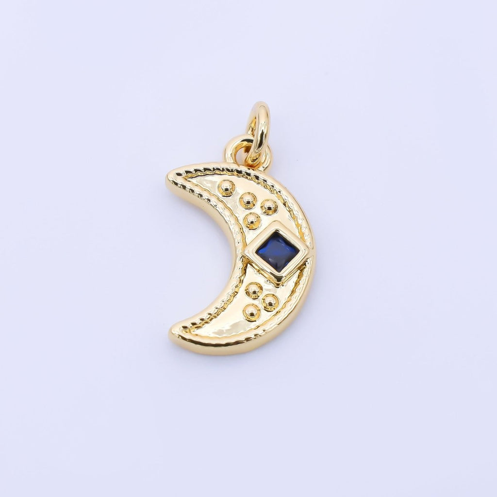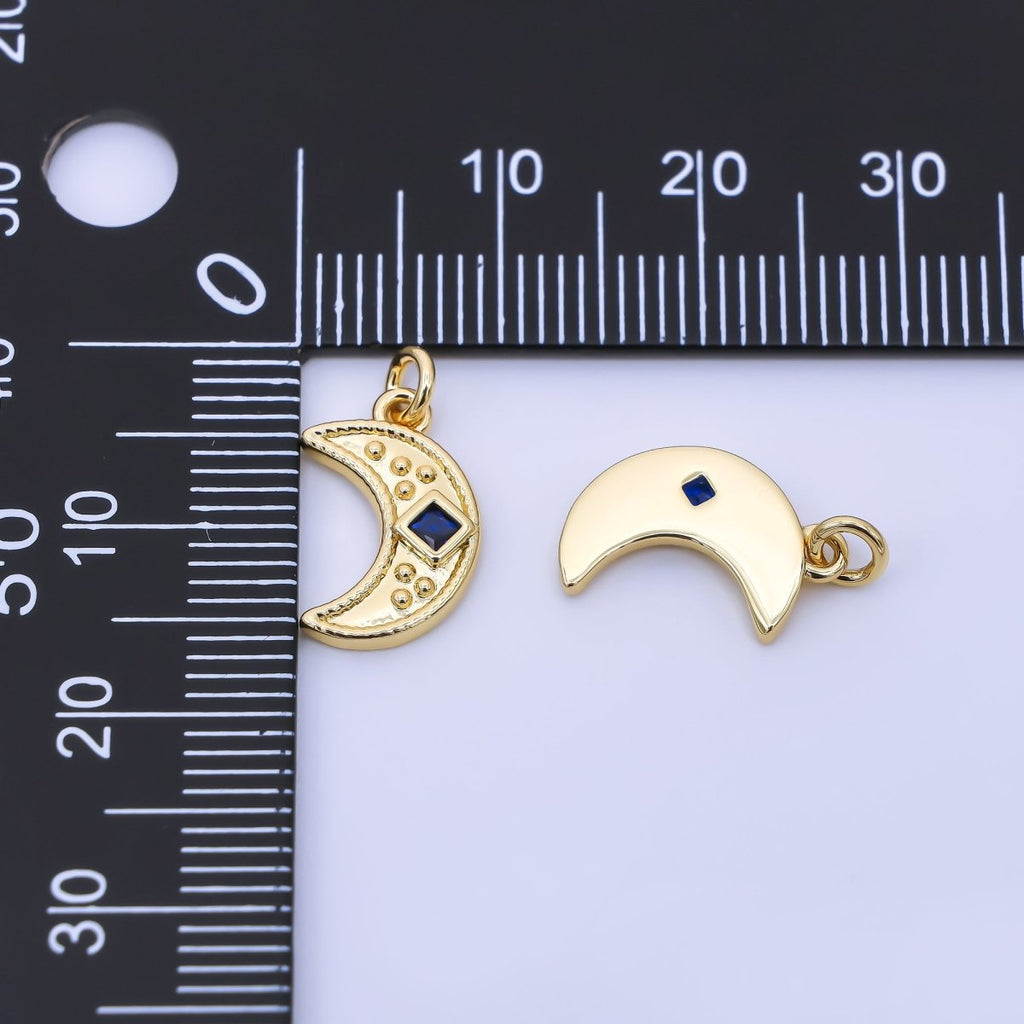 24K Gold Filled 14mm Blue Square CZ Celestial Crescent Moon Charm | AC1609