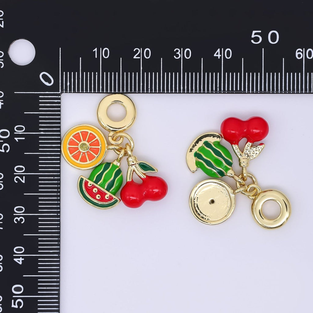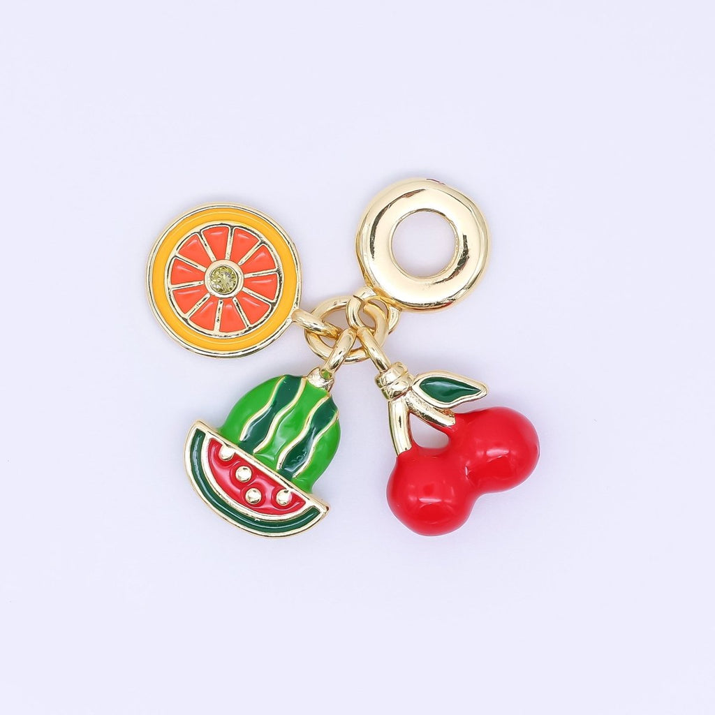 24K Gold Filled Orange Watermelon Cherry Fruit Enamel Drop Rondelle Charm | AC1639