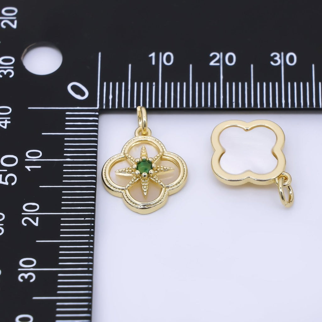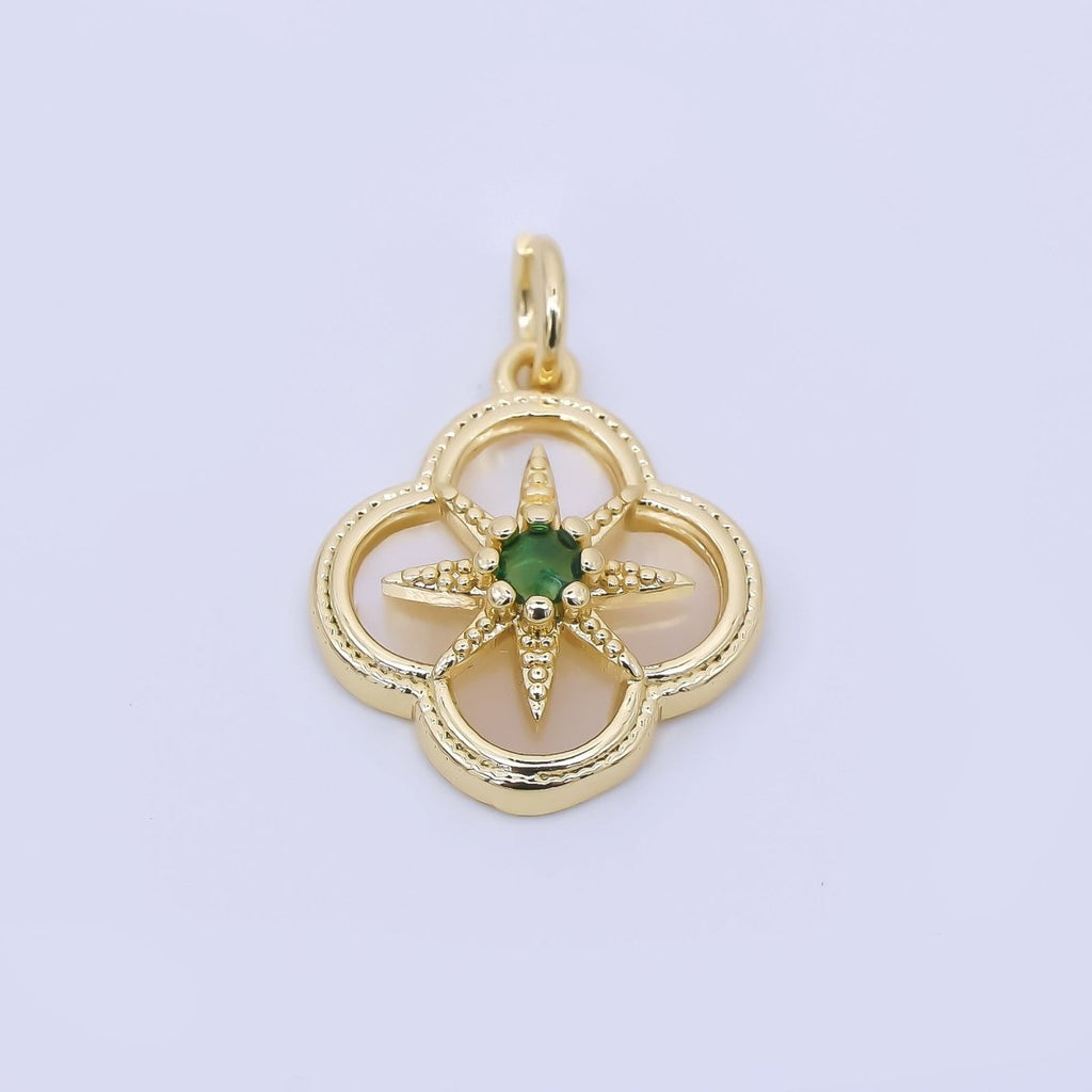 24K Gold Filled 16mm Green CZ Shell Pearl Northern Star Clover Flower Charm | AF1275