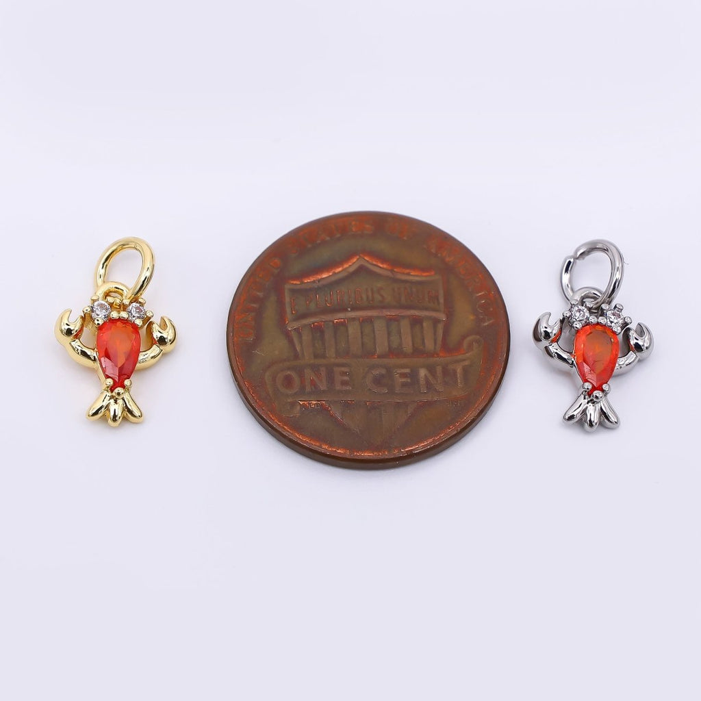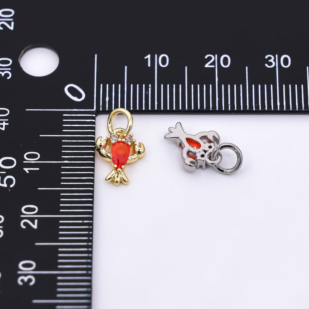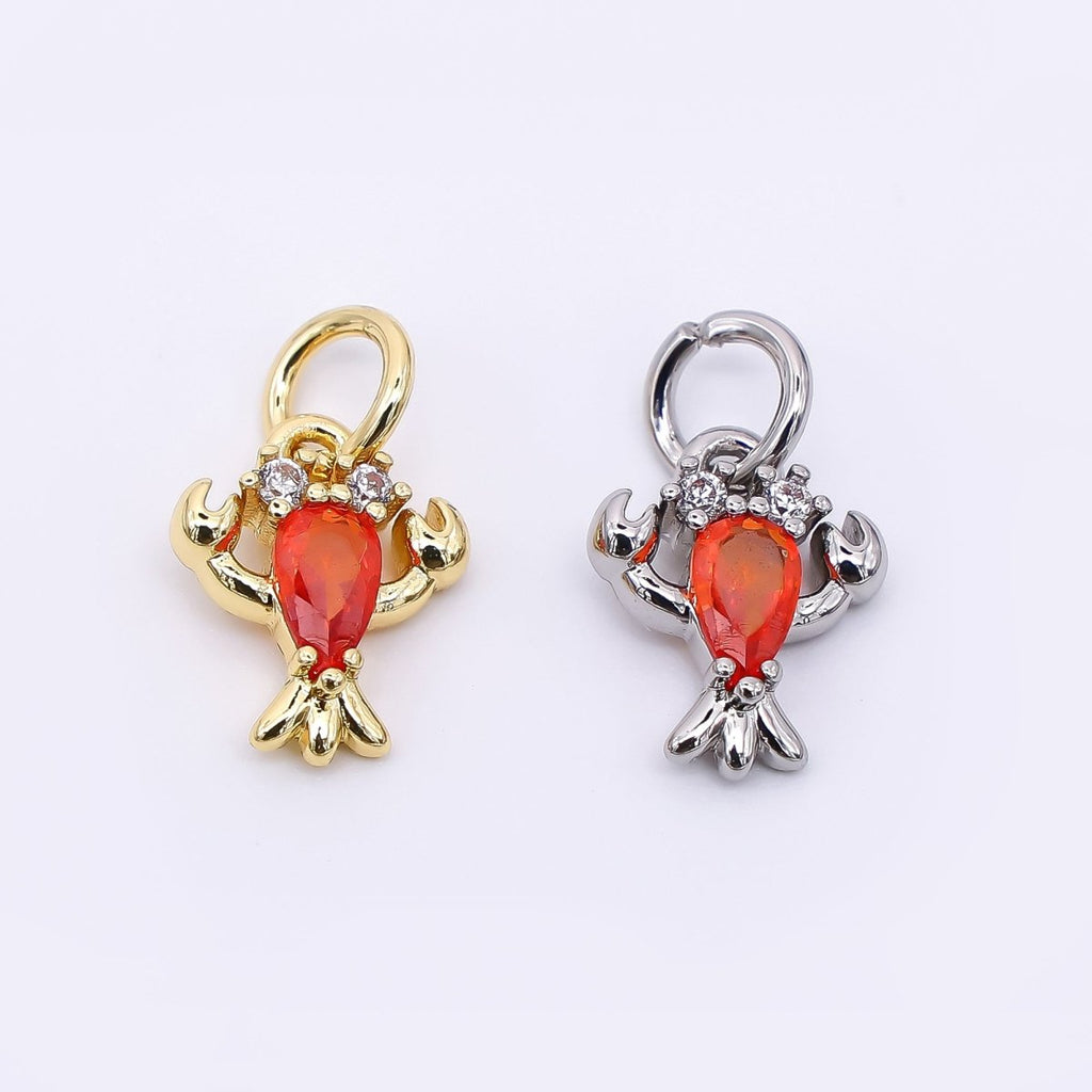 24K Gold Filled CZ Red Lobster Animal Charm in Gold & Silver | M653