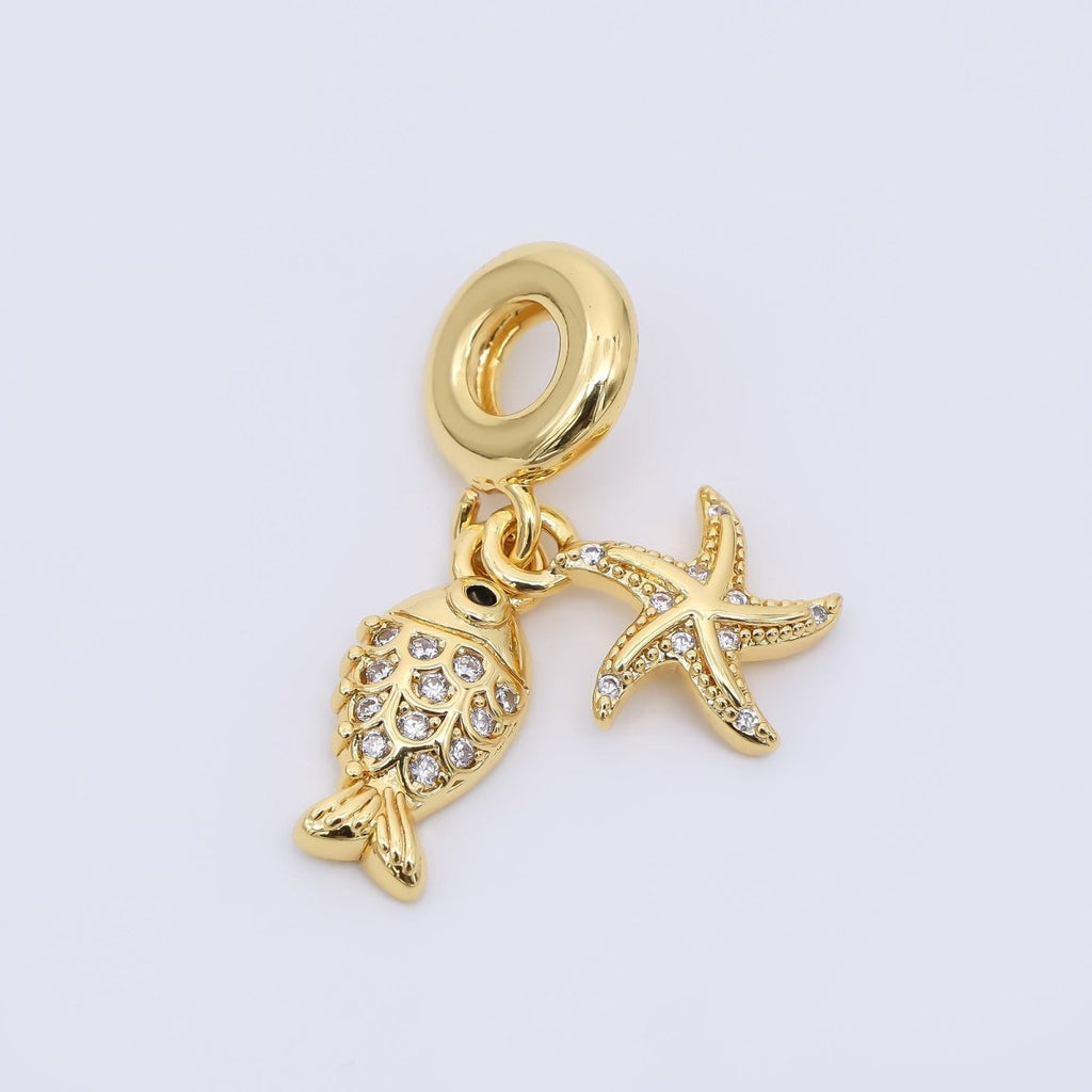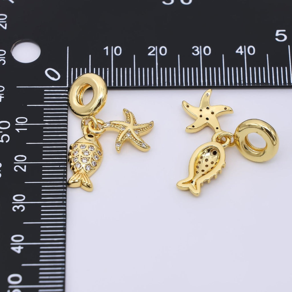 24K Gold Filled Starfish Sardine Fish Micro Paved CZ Rondelle Drop Charm | AC1644