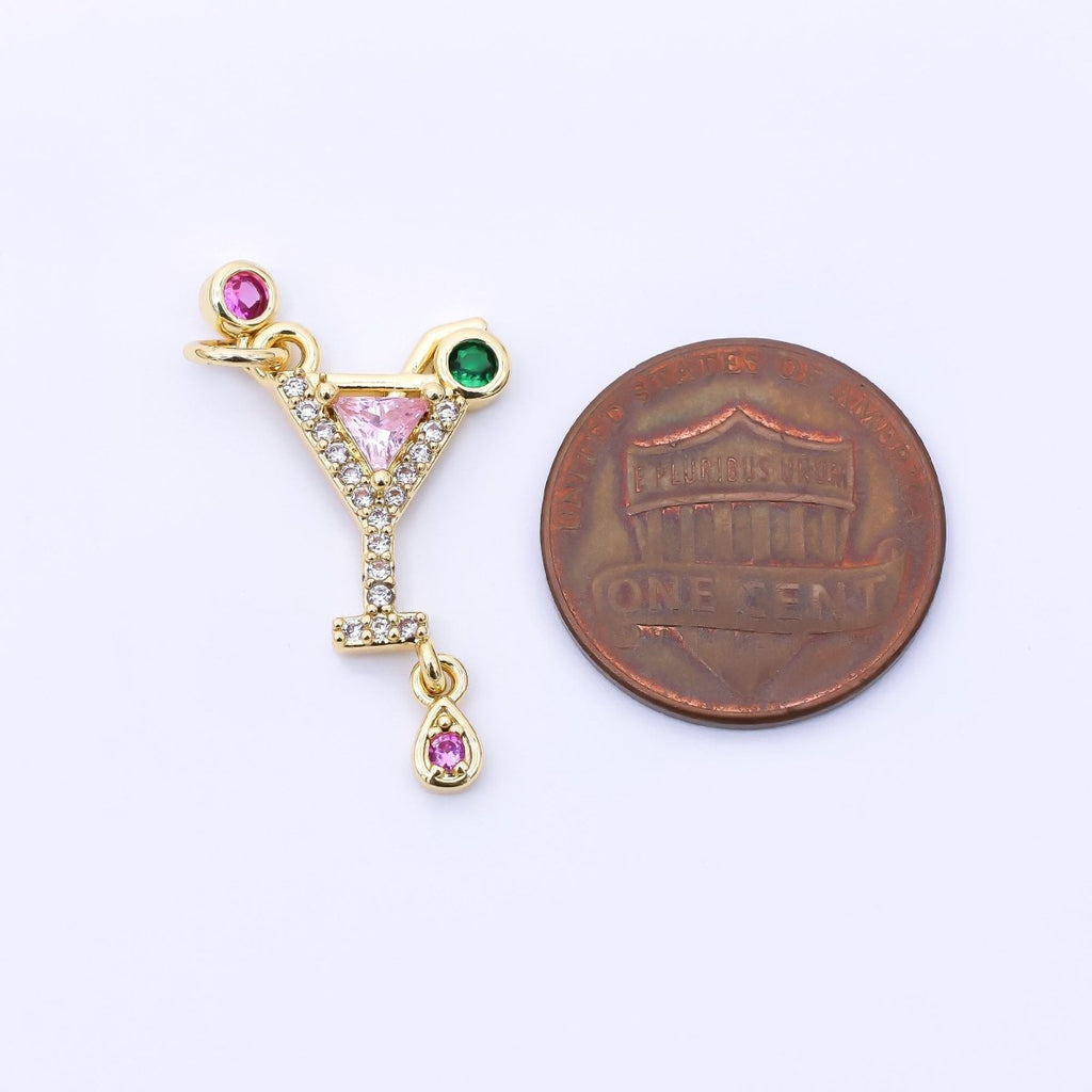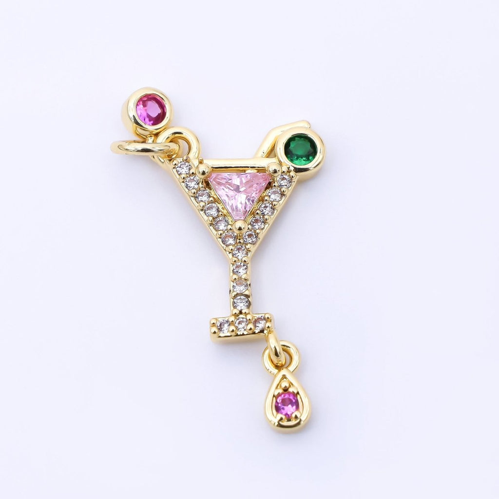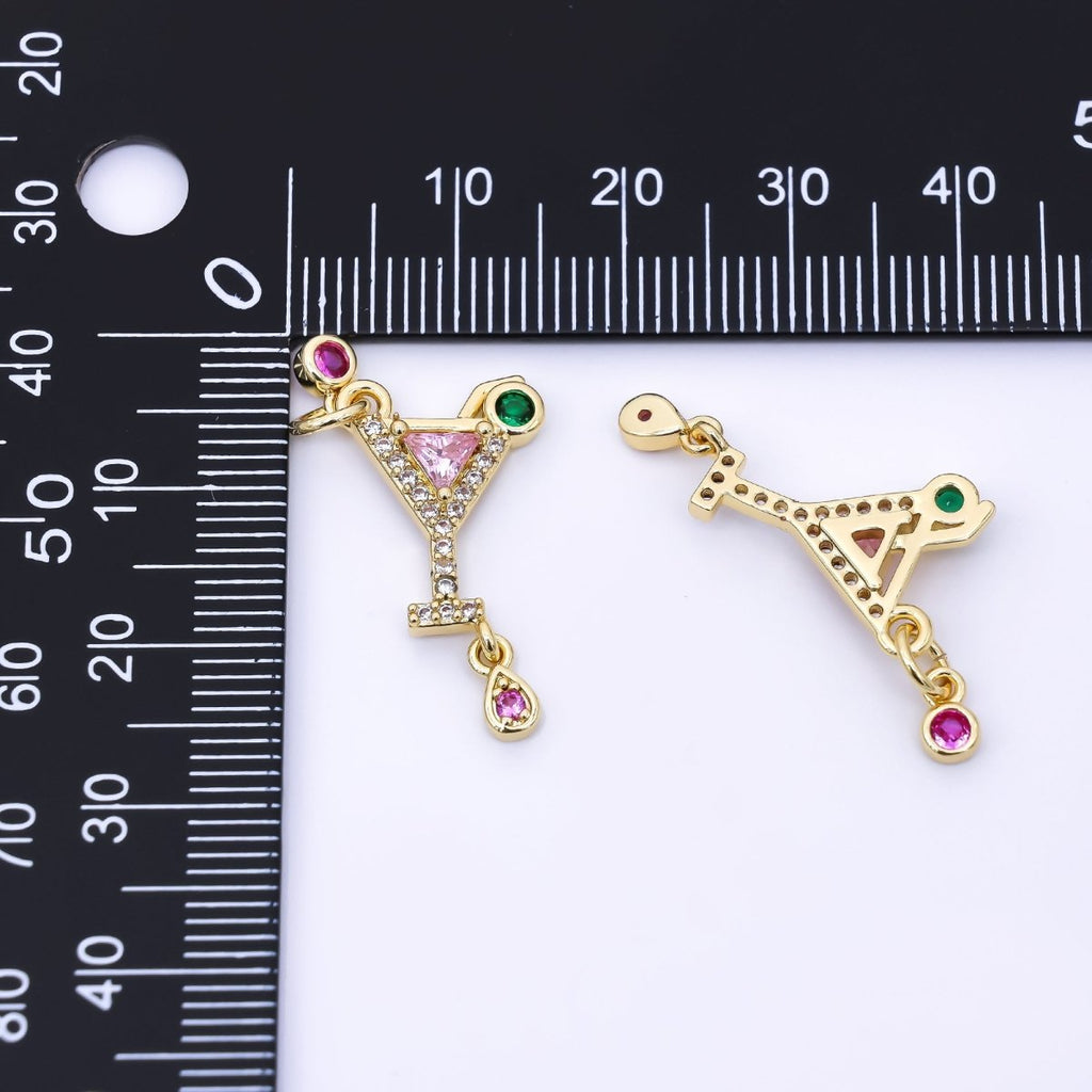 24K Gold Filled 18.5mm Pink, Green, & Fuchsia CZ Cocktail Drink Charm | AC1605