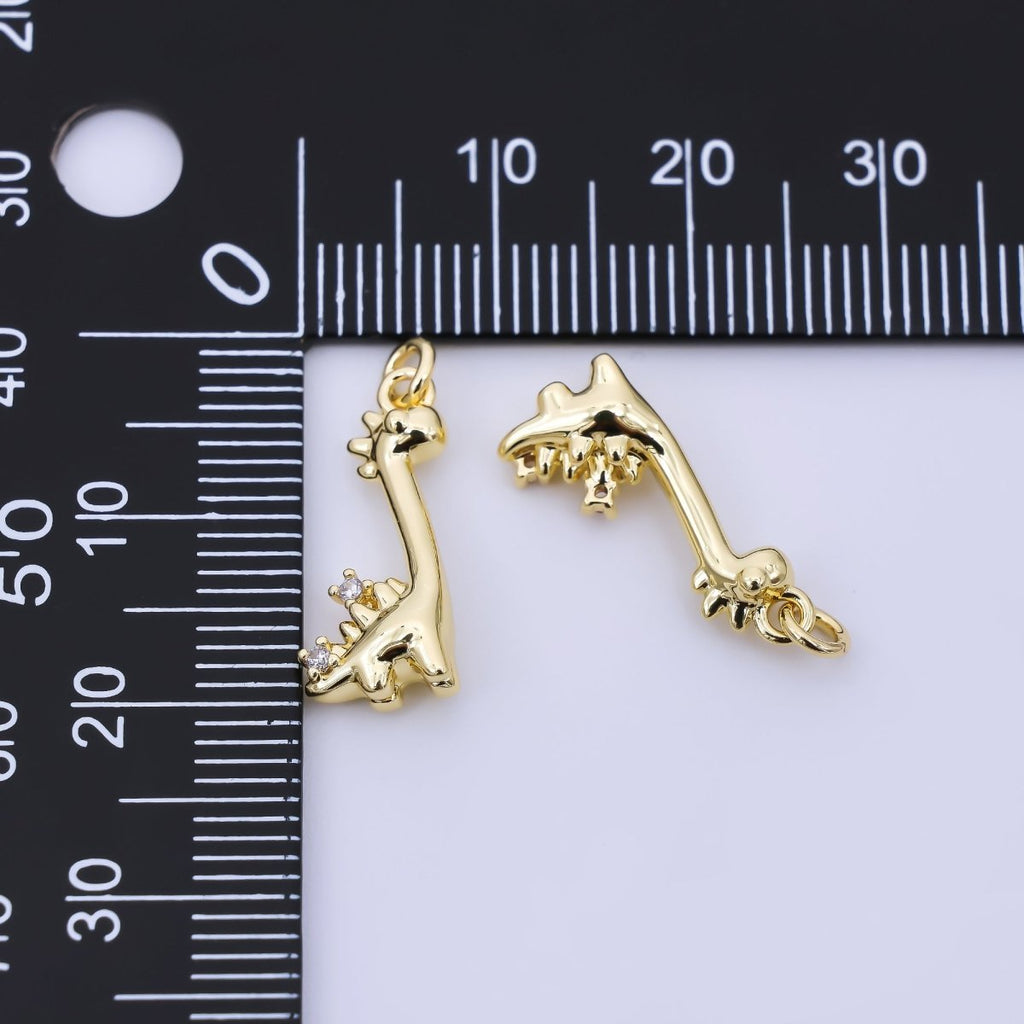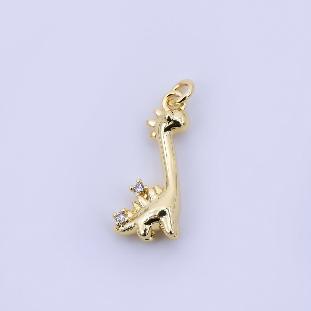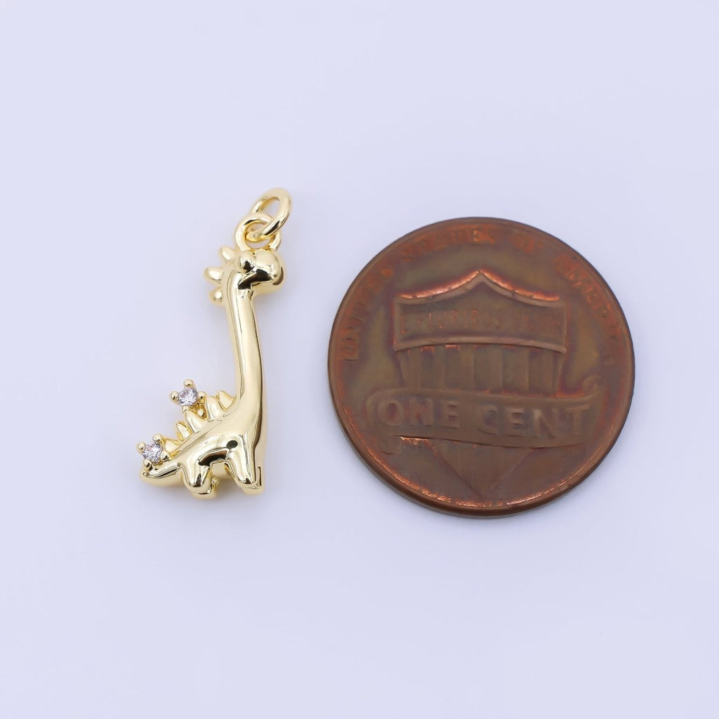 24K Gold Filled 18mm Clear CZ Brontosaurus Dinosaur 3D Multidimensional Charm | AJ396