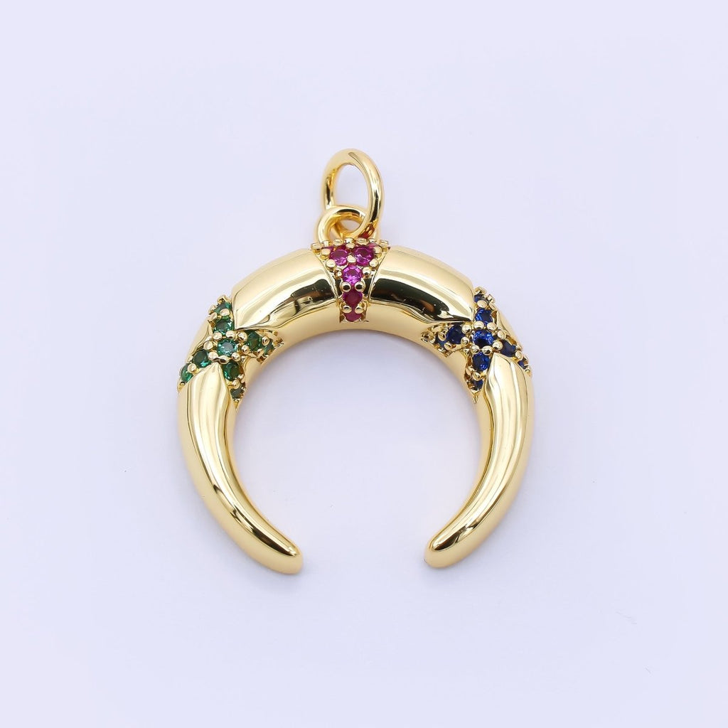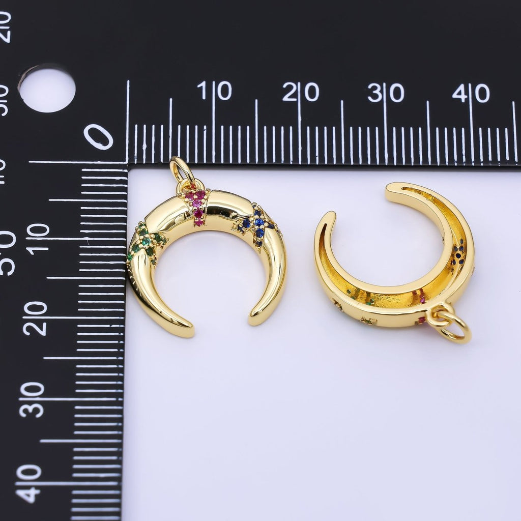 24K Gold Filled 20mm Green, Fuchsia, & Blue Micro Paved CZ Crescent Moon Charm | AC1610