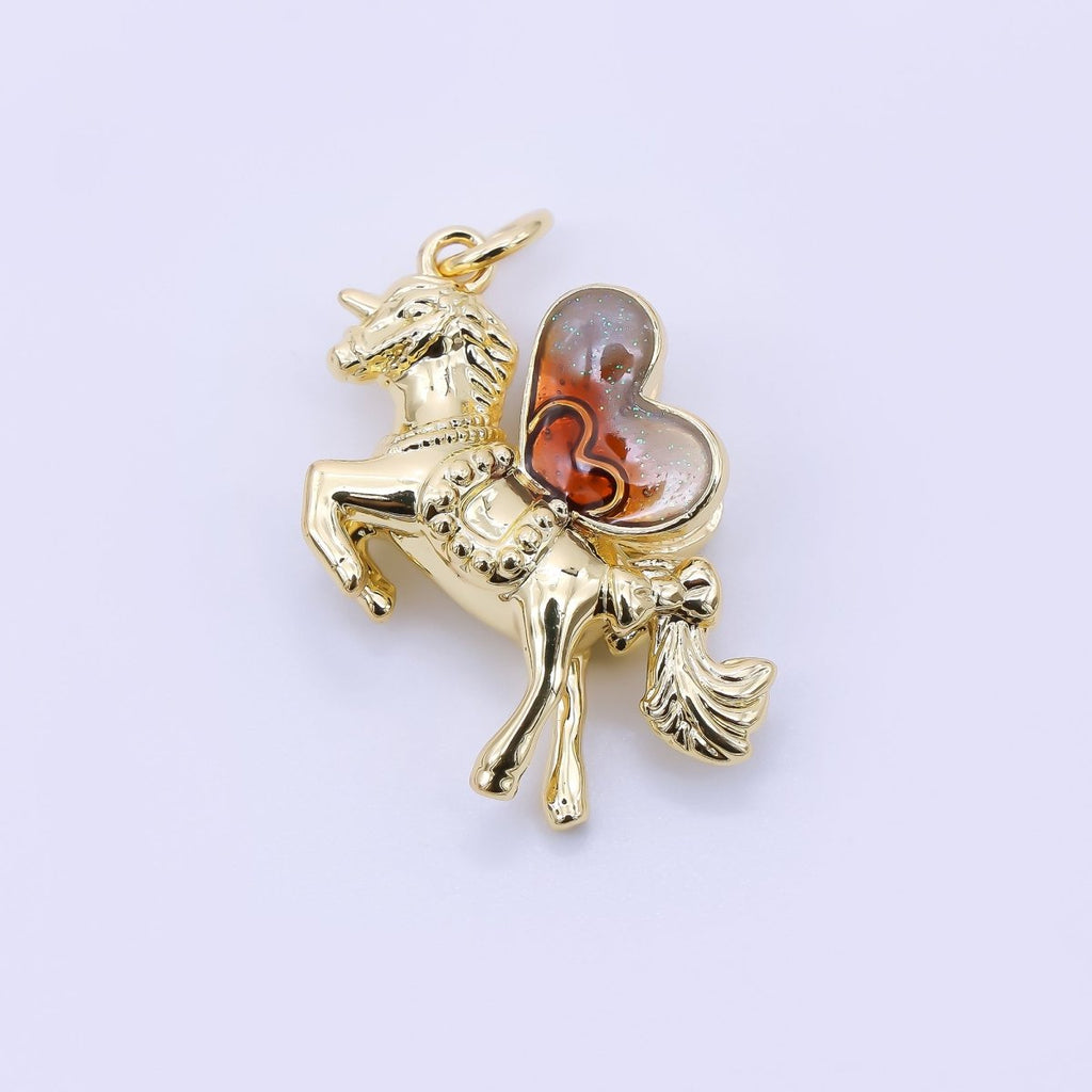24K Gold Filled 22mm Resin Art Circus Horse Animals Charm | AJ394