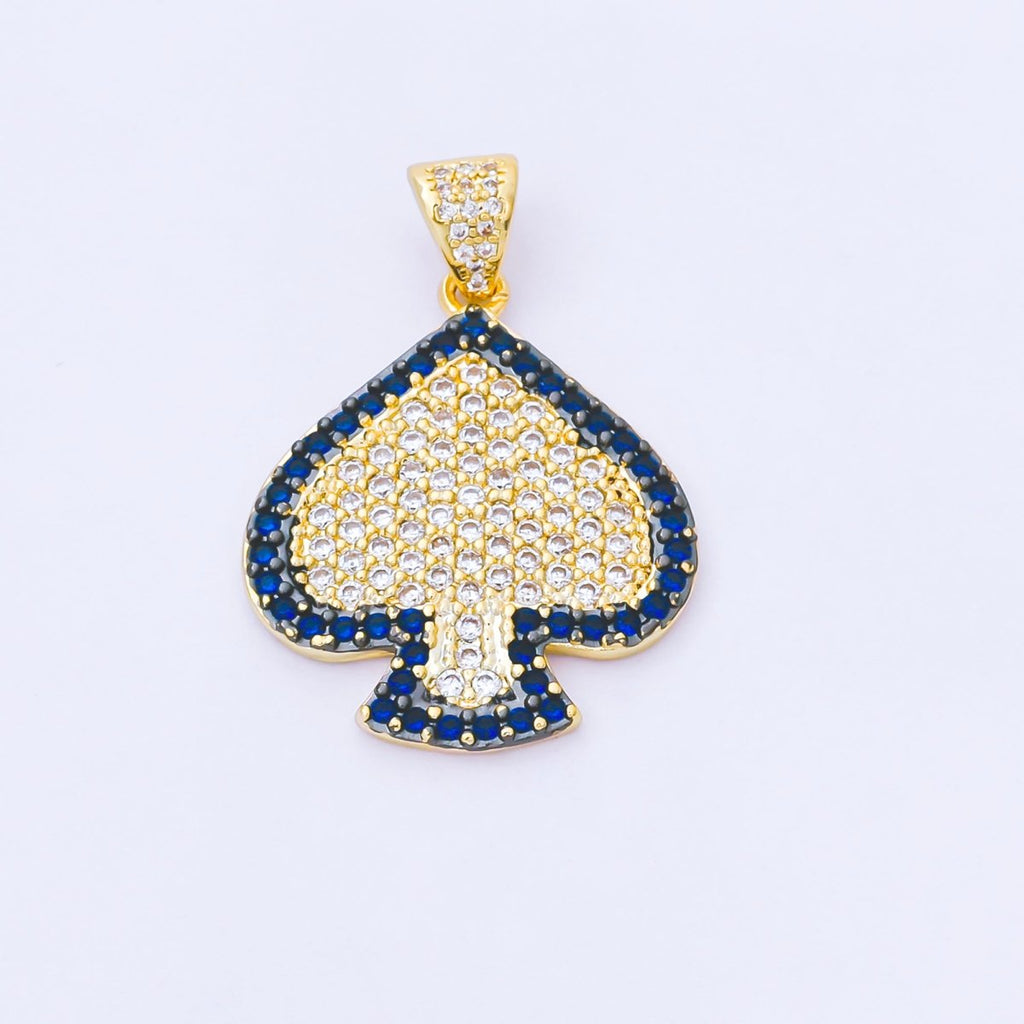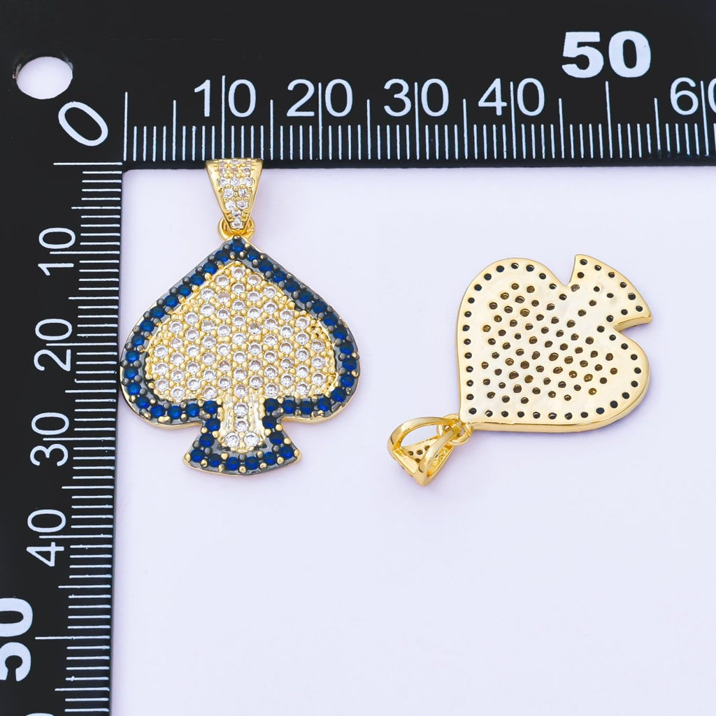 24K Gold Filled Clear Blue Micro Paved CZ Card Spade Pendant | AA1619