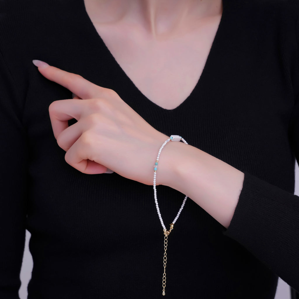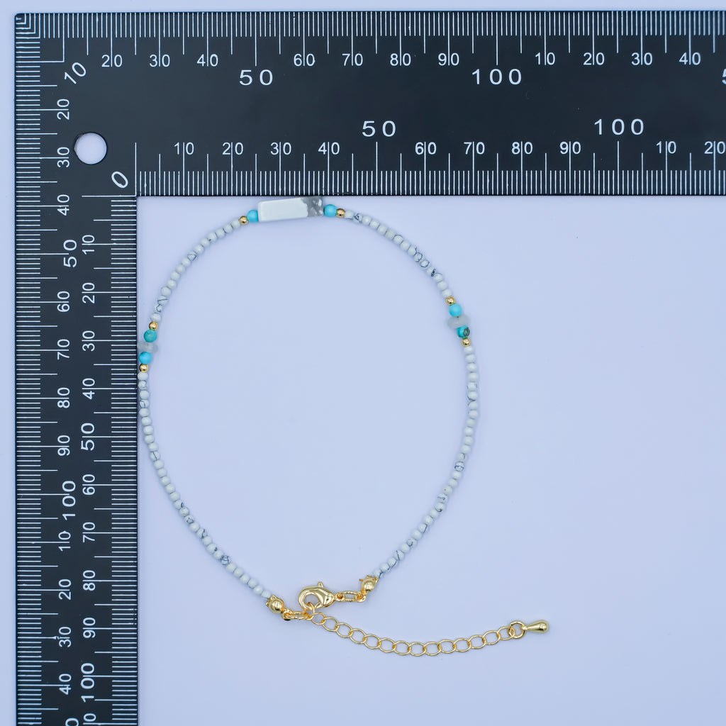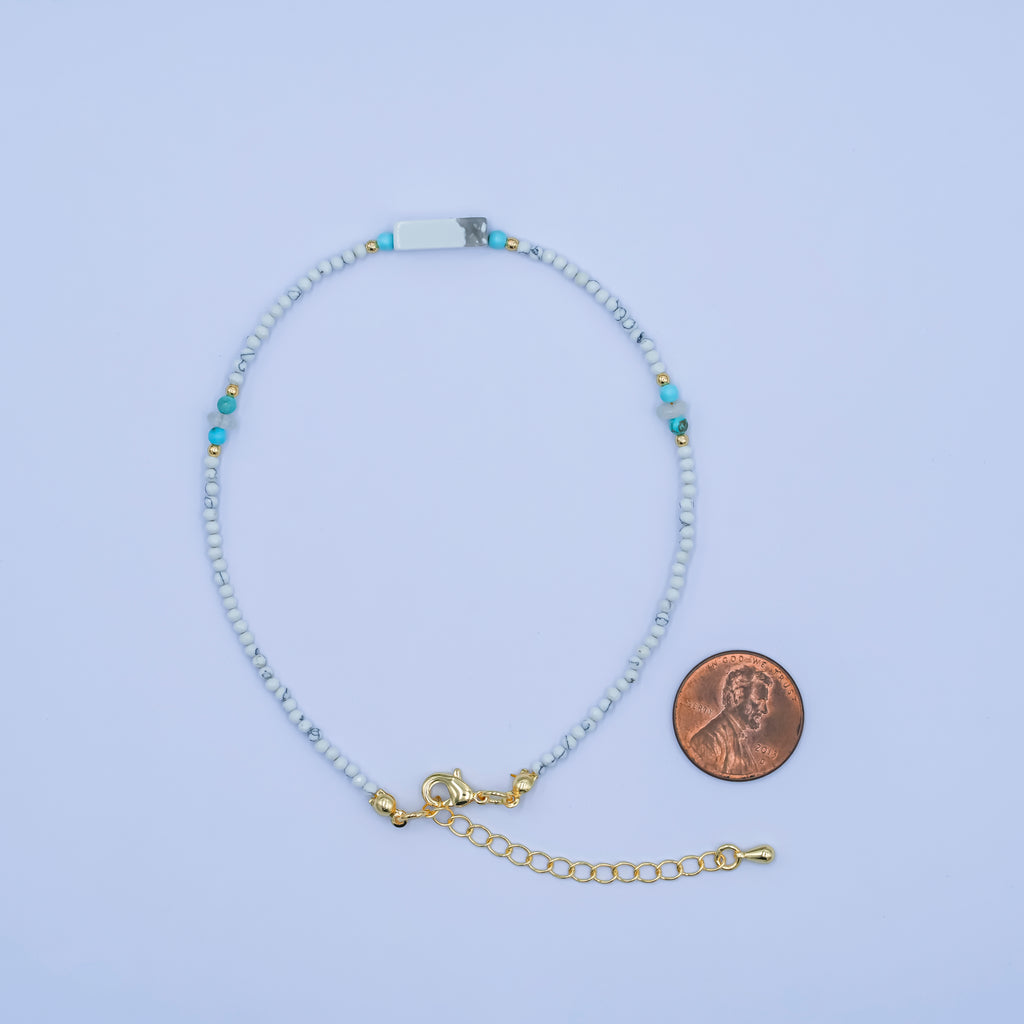 24K Gold Filled 2mm Blue Turquoise Howlite Gemstone 9.5 Inch Anklet | WA-2952