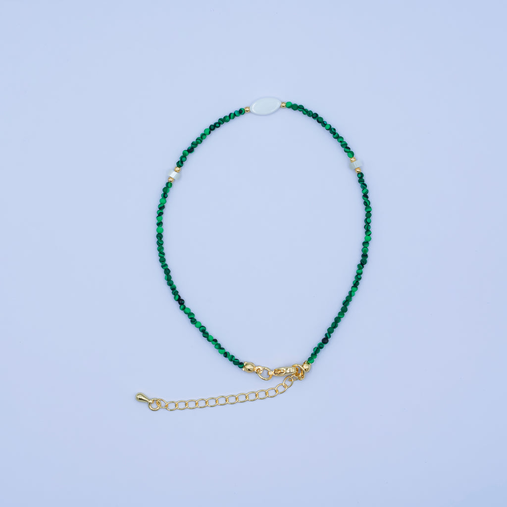 24K Gold Filled 2mm Shell Pearl Malachite Multifaceted Gemstone 9 Inch Anklet | WA-2946