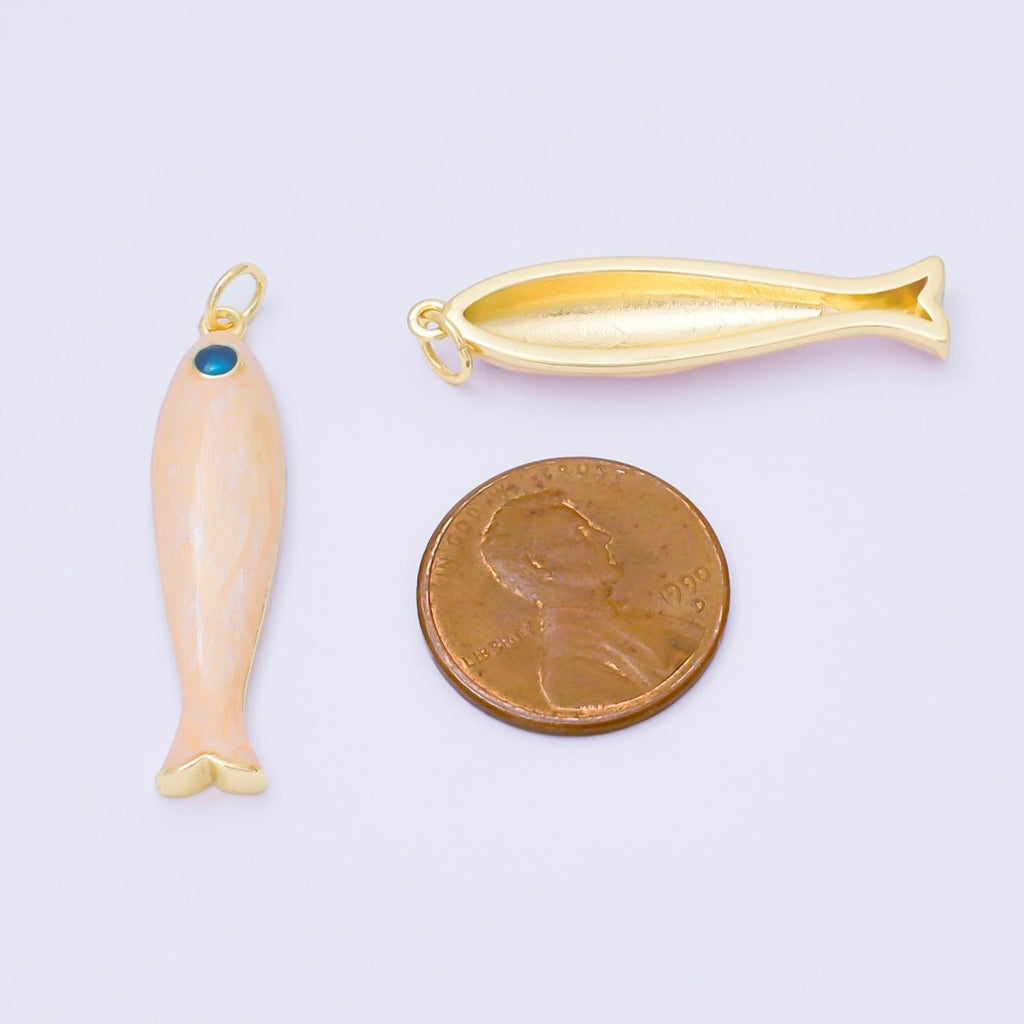 24K Gold Filled 34mm Peach Enamel Sardine Sea Fish Charm | M568