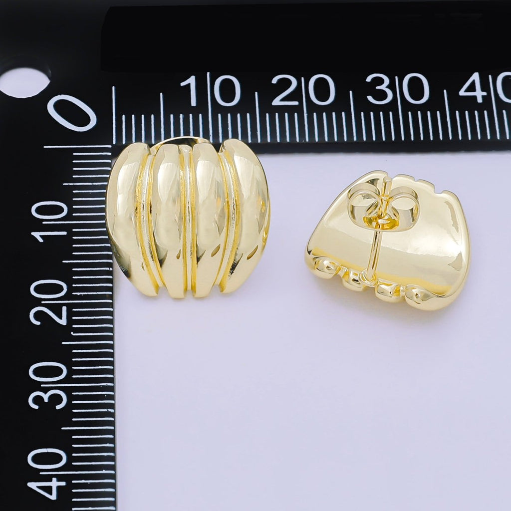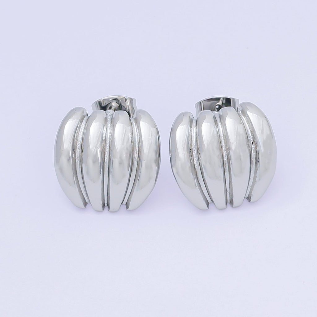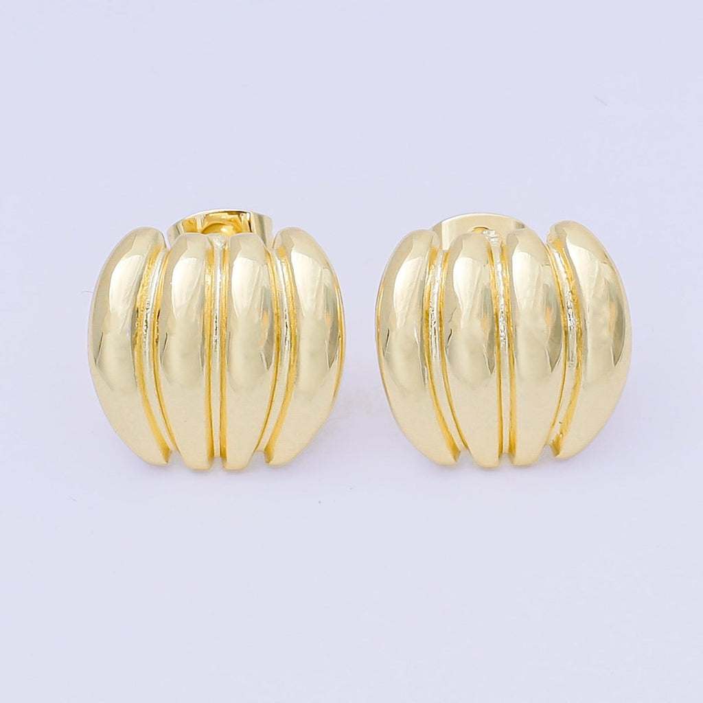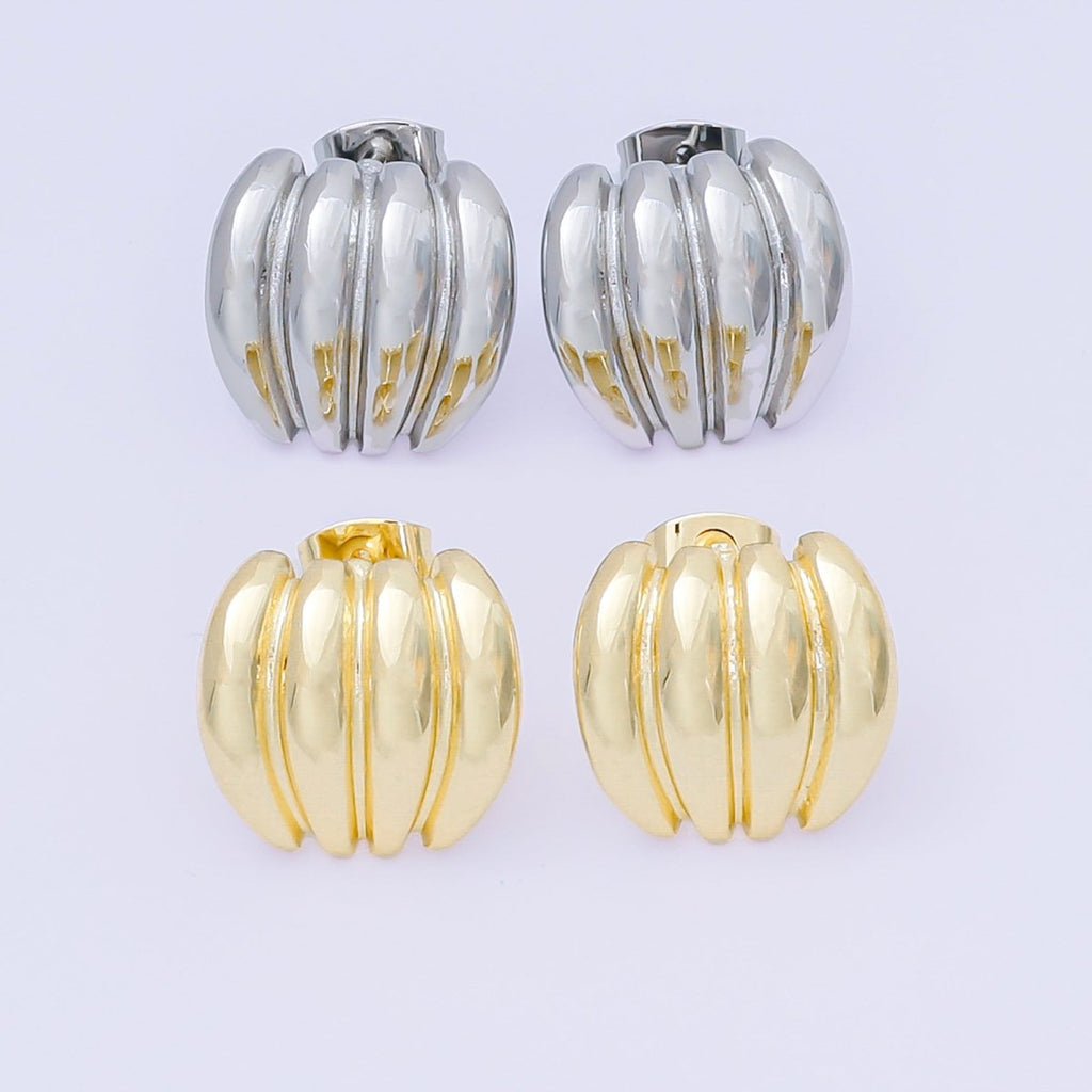 24K Gold Filled Ribbed Croissant Curved Geometric Stud Earrings in Gold & Silver | AJ111 AJ1112