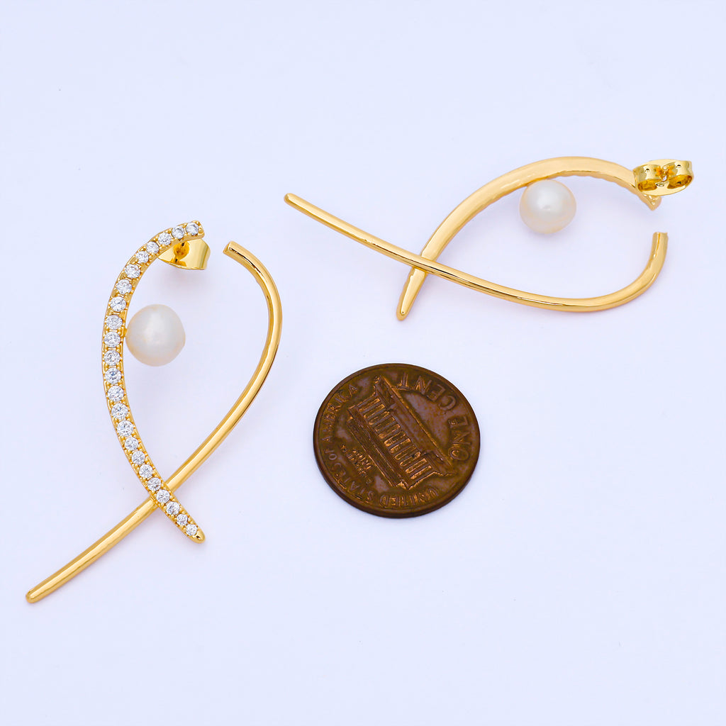 24K Gold Filled Elegant Gold Arc Earrings Pearl Micro Pave Pave Drop Design Stud Earrings | AB1654