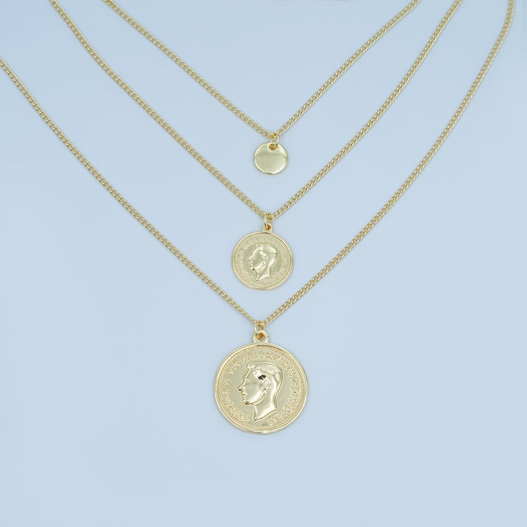 24K Gold Filled Face Coin Triple Layer Curb Chain Necklace | WA-3051